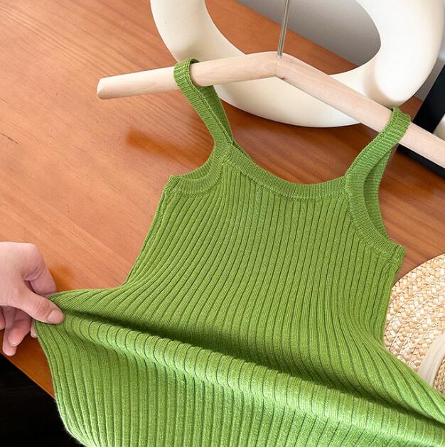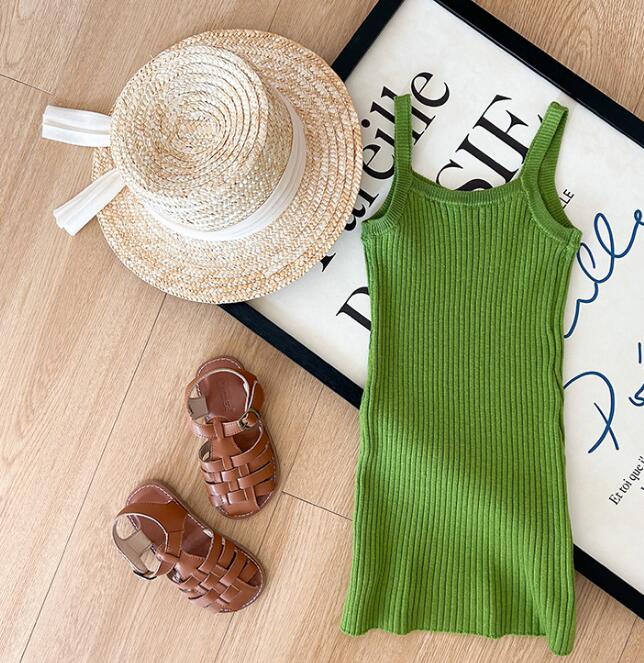 子供服★ワンピース★ノースリーブ★無地★韓国風子供服★キッズ女の子★ニット★80-150CM