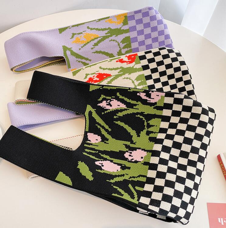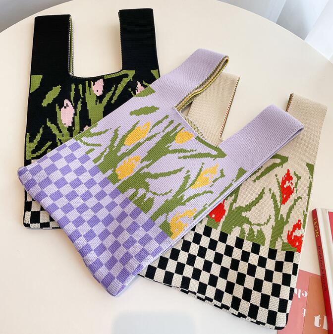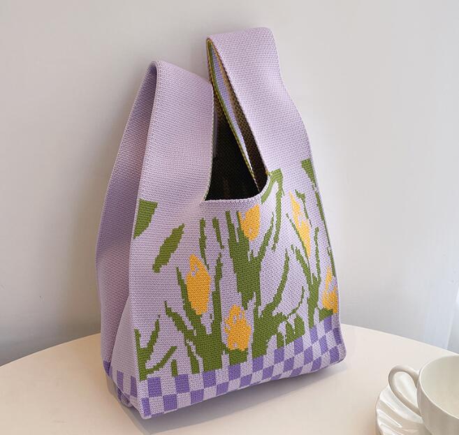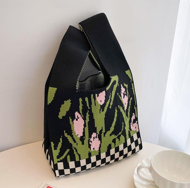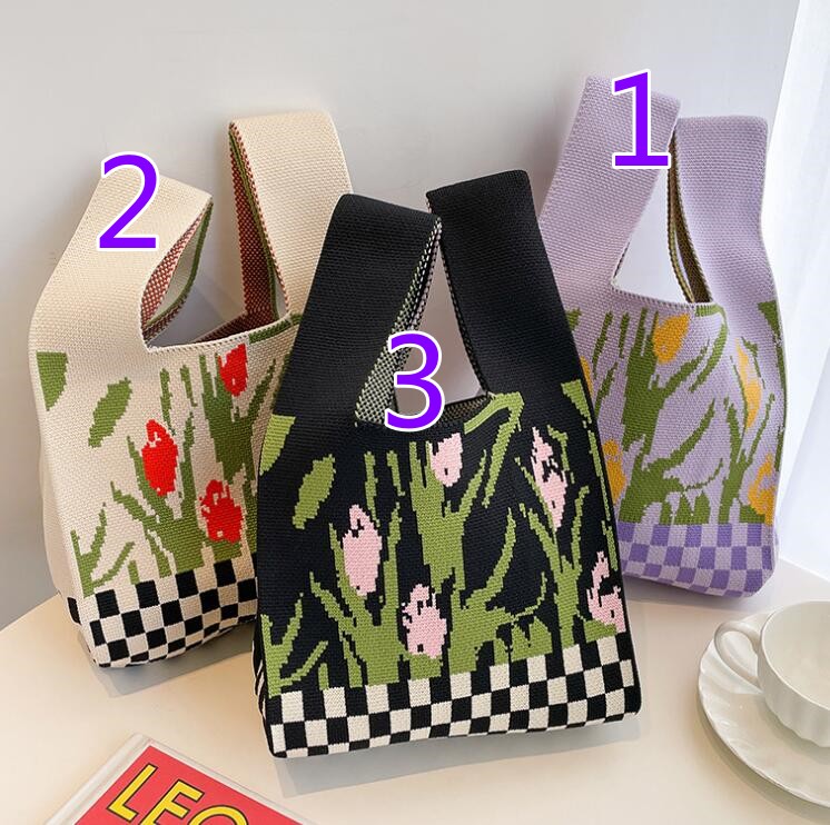 バッグ★レディース★トートバッグ★ハンドバッグ★ニットバッグ★花柄★大容量★3色