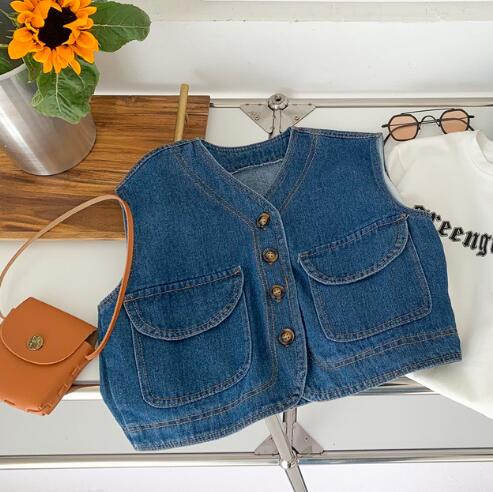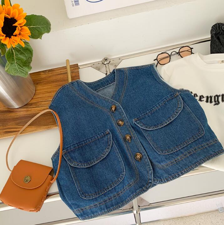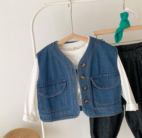 子供服★トップス★デニムチョッキ★ベスト★韓国子供服★キッズ★男女兼用★90-130CM