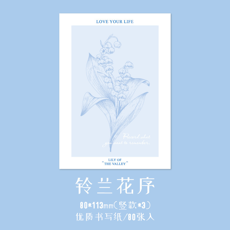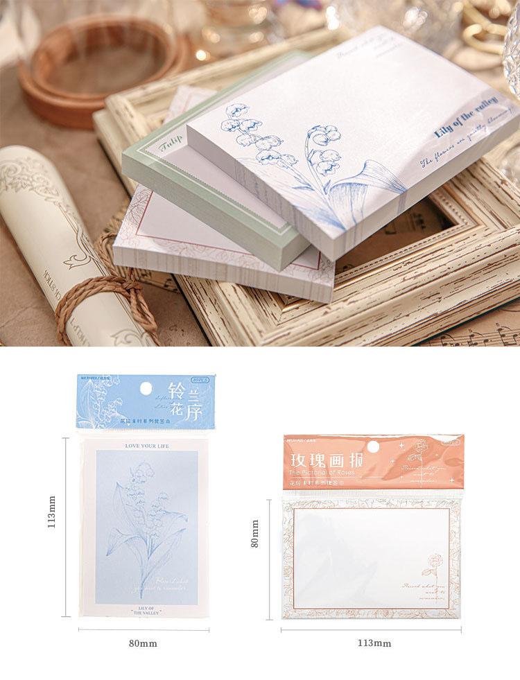 秋味 インテリア ペーパー 素材紙メモ紙 ラベル イラスト 花フラワー ローズ 鈴蘭 80枚入