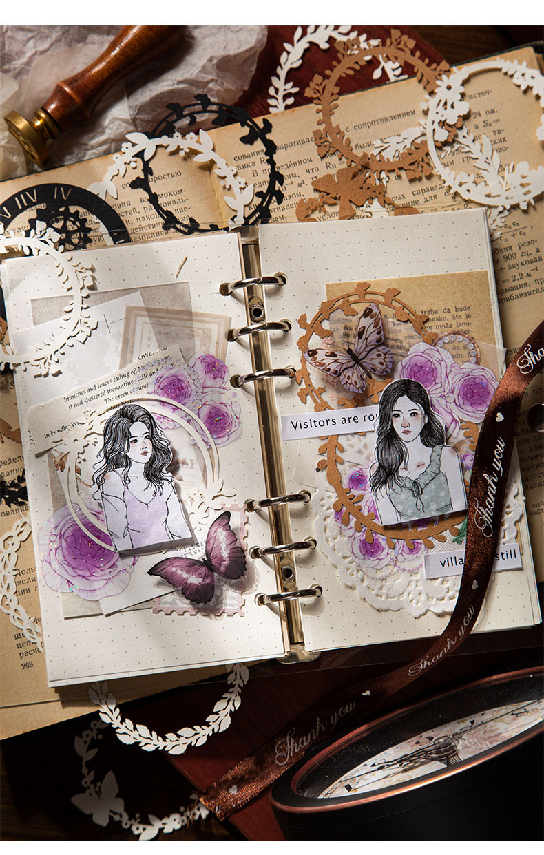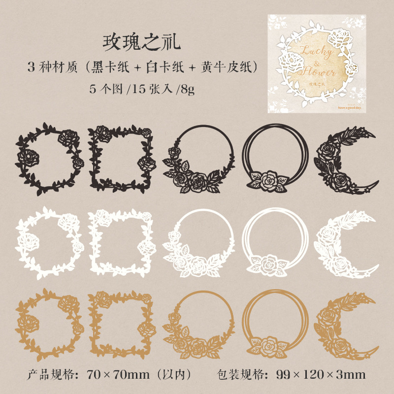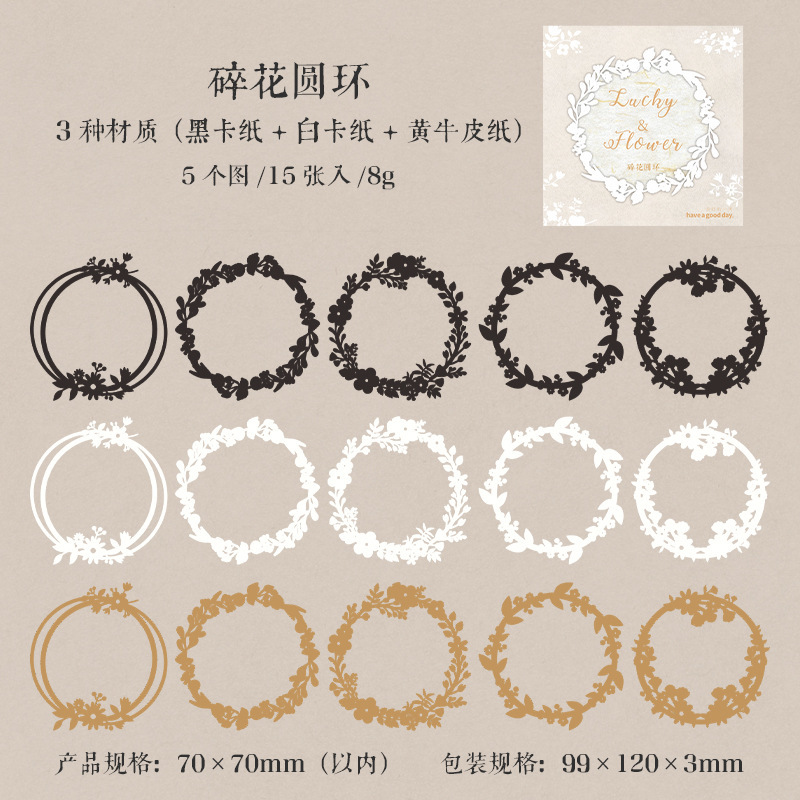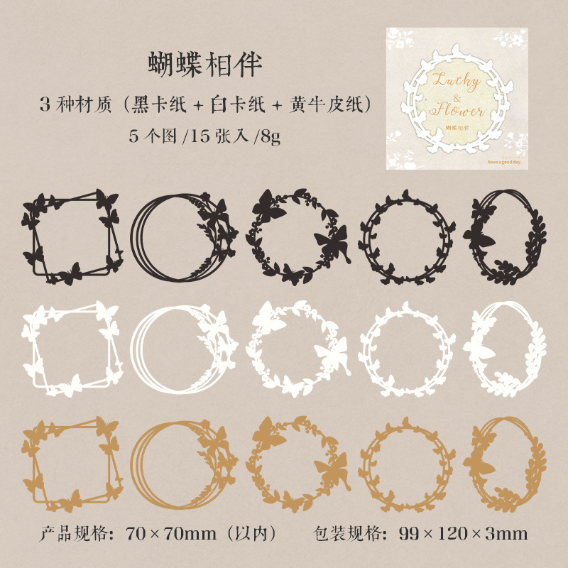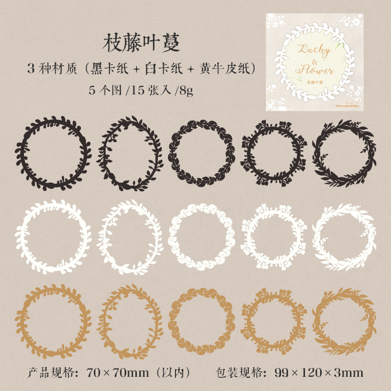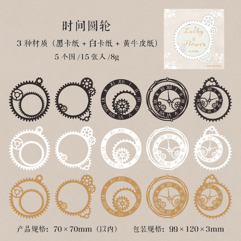 秋味 包装インテリア ペーパー 素材紙 パッキング アンティーク 葉花フラワー 時計歯車 枠 15枚入