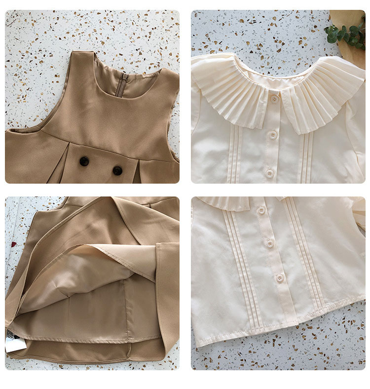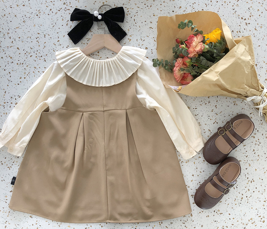 秋冬新作 ガールズ オシャレ春秋 フリル ブラウス シャツ ジャンパースカート ワンピ 90-140