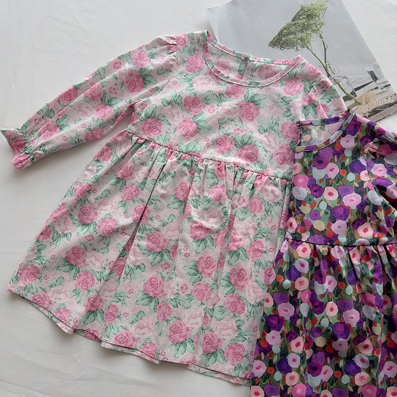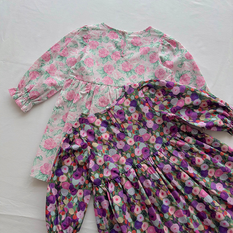 オシャレ春秋 ガールズ 子供服 シフトドレス レトロ ワンピース ボタニカル 花柄 フリル ワンピ 90-140