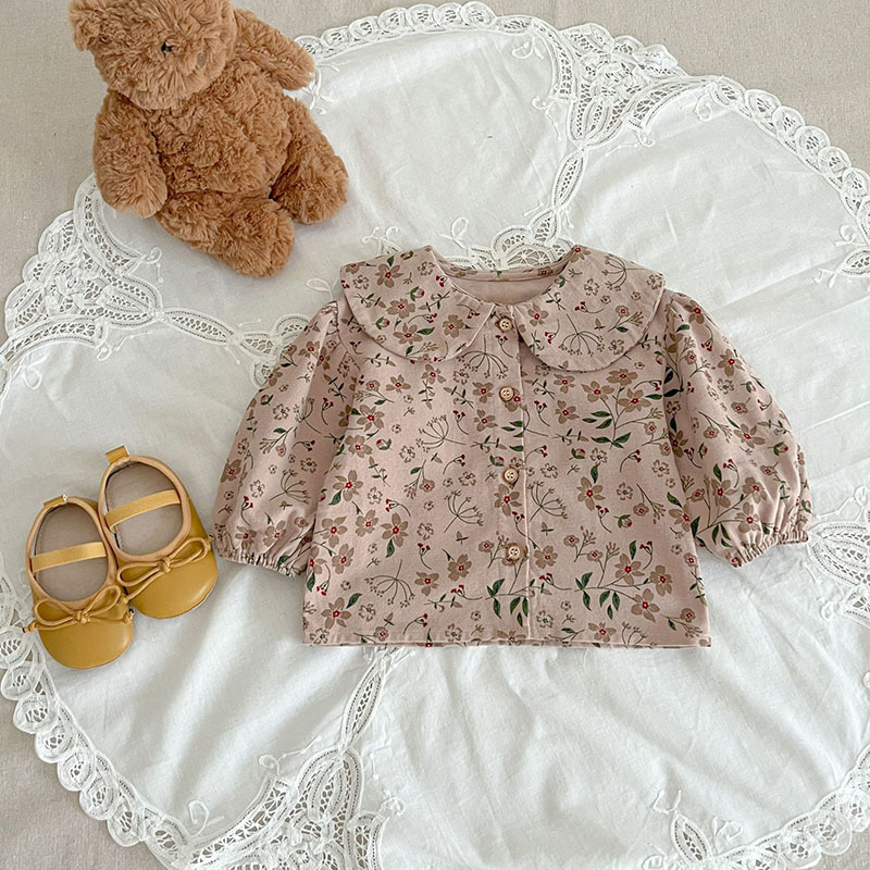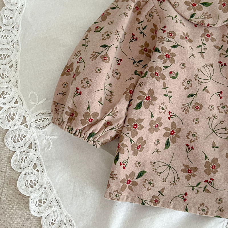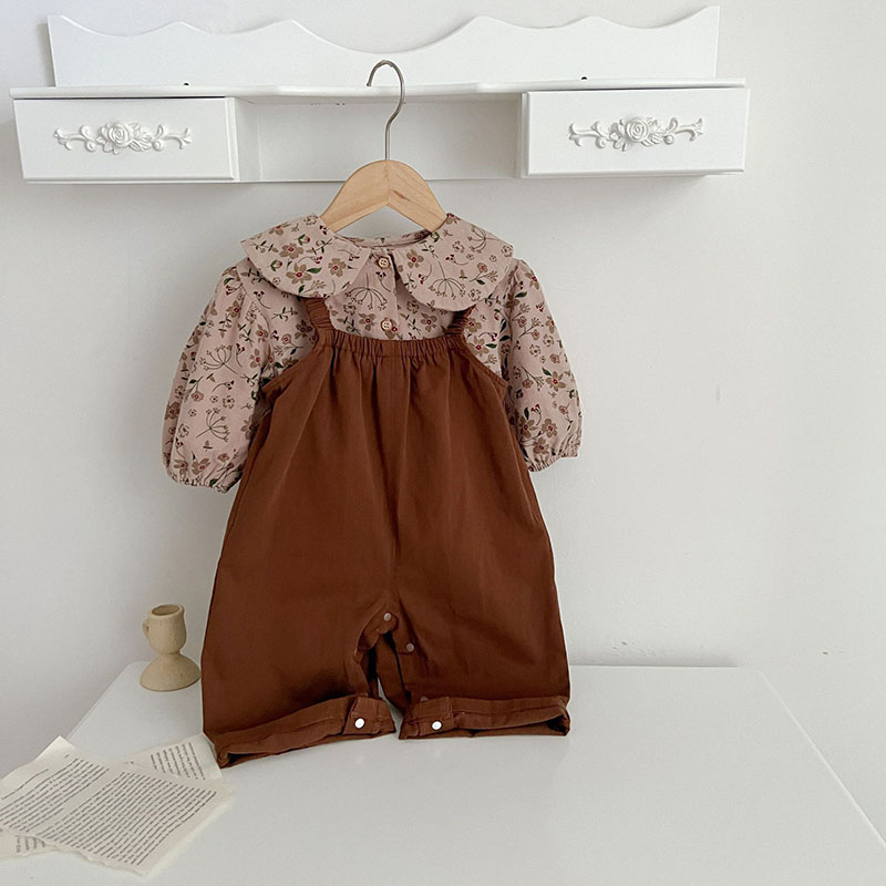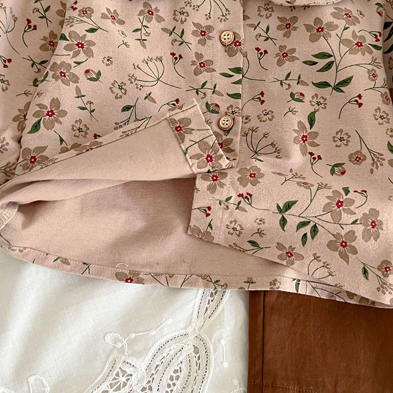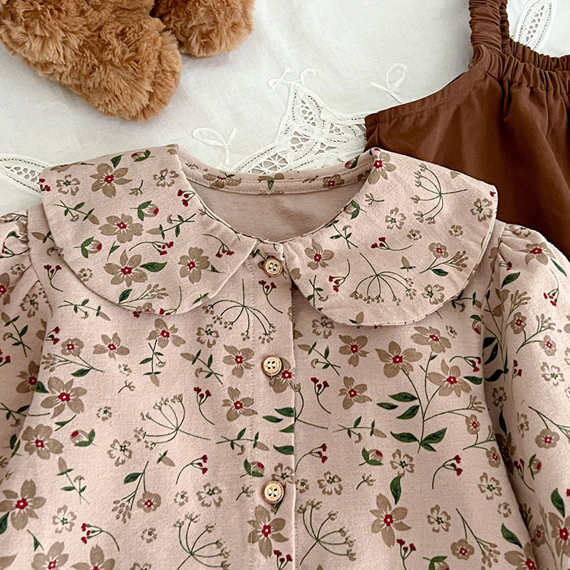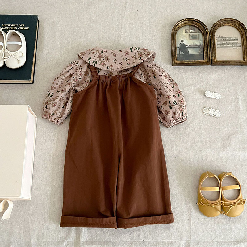秋冬新作 ガールズ ベビー服 レトロ ワイドパンツ サロペット 花柄 ブラウス シャツ+パンツ 66-100