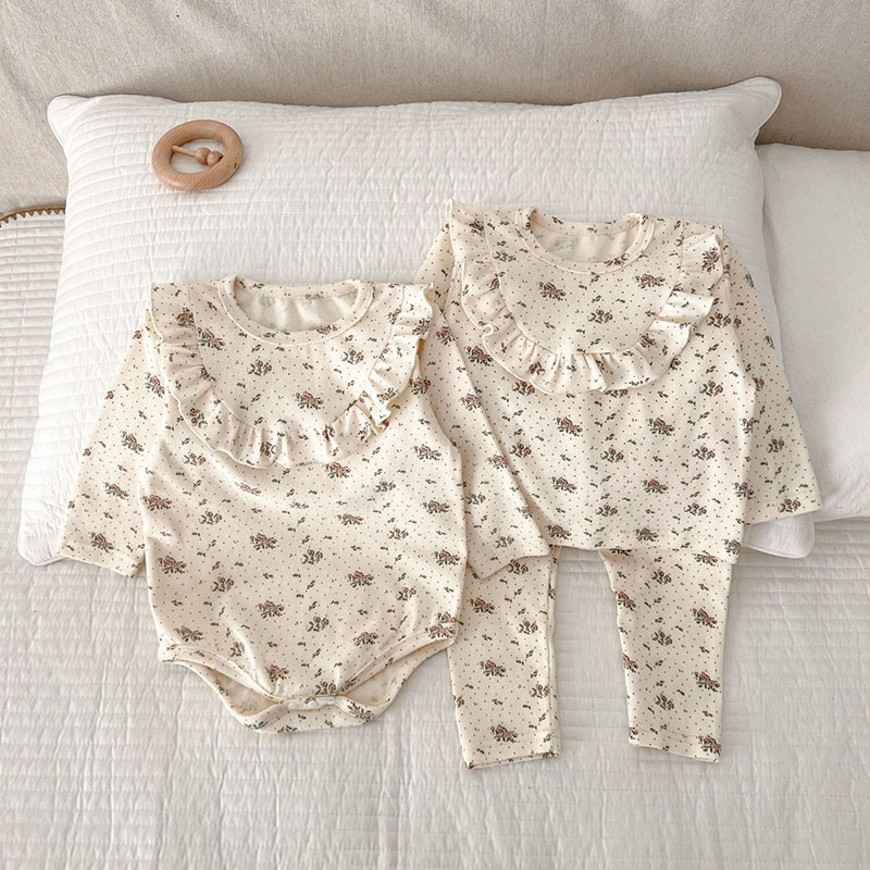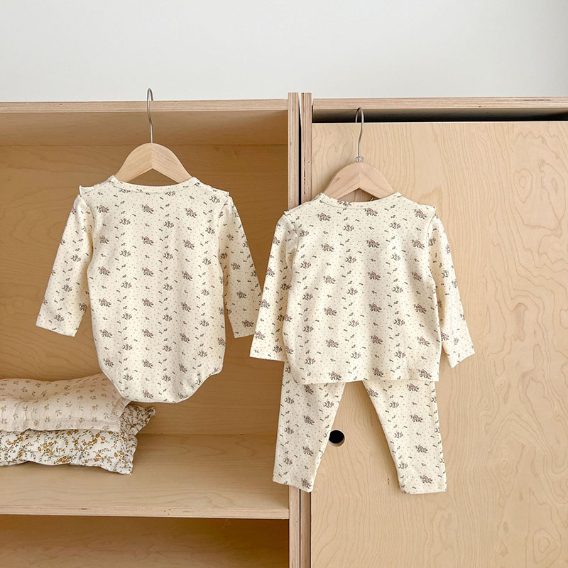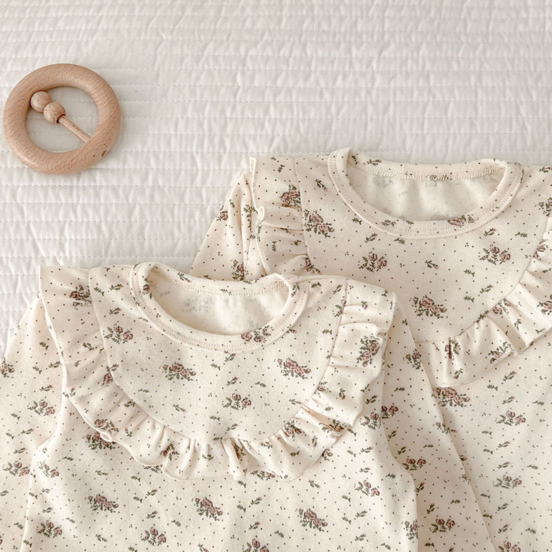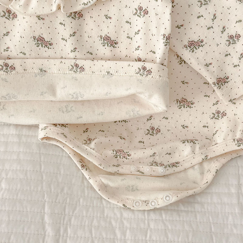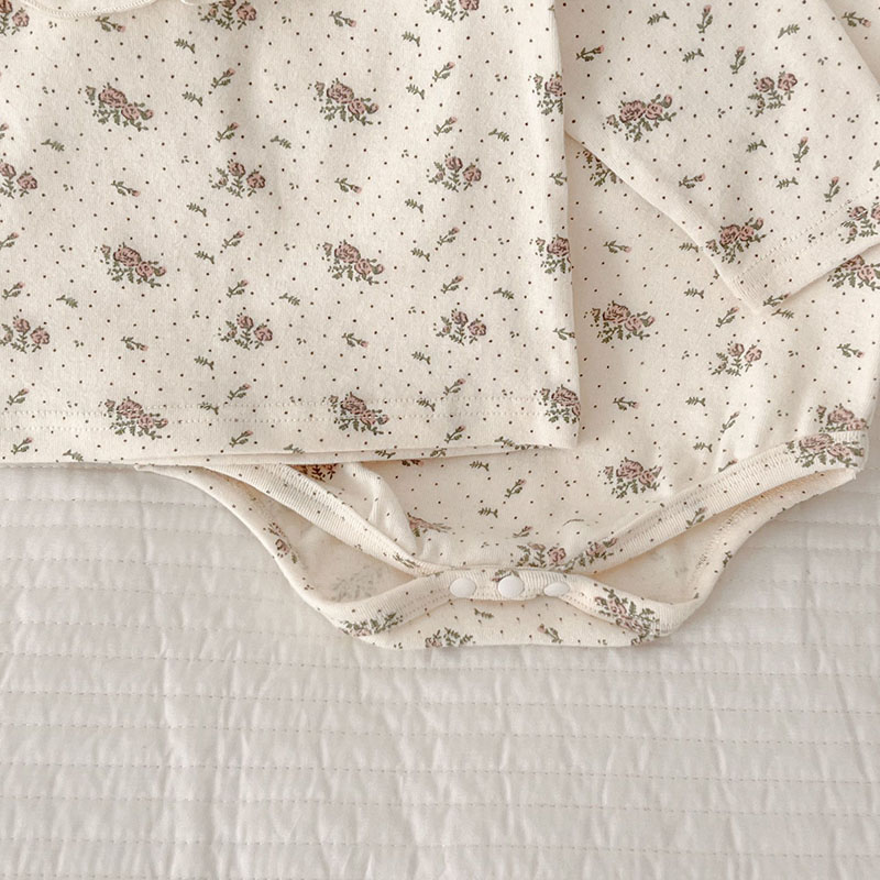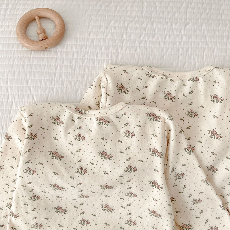 オシャレ春秋 ガールズ ルームウェア ロンパース 連体服 花柄ドット柄 室内着 Tシャツ+ズボン 66-100