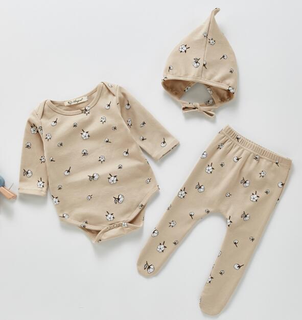 2023★春秋新作★韓国風ベビー服★ロンパース+ズボン+帽子★2色66-100CM
