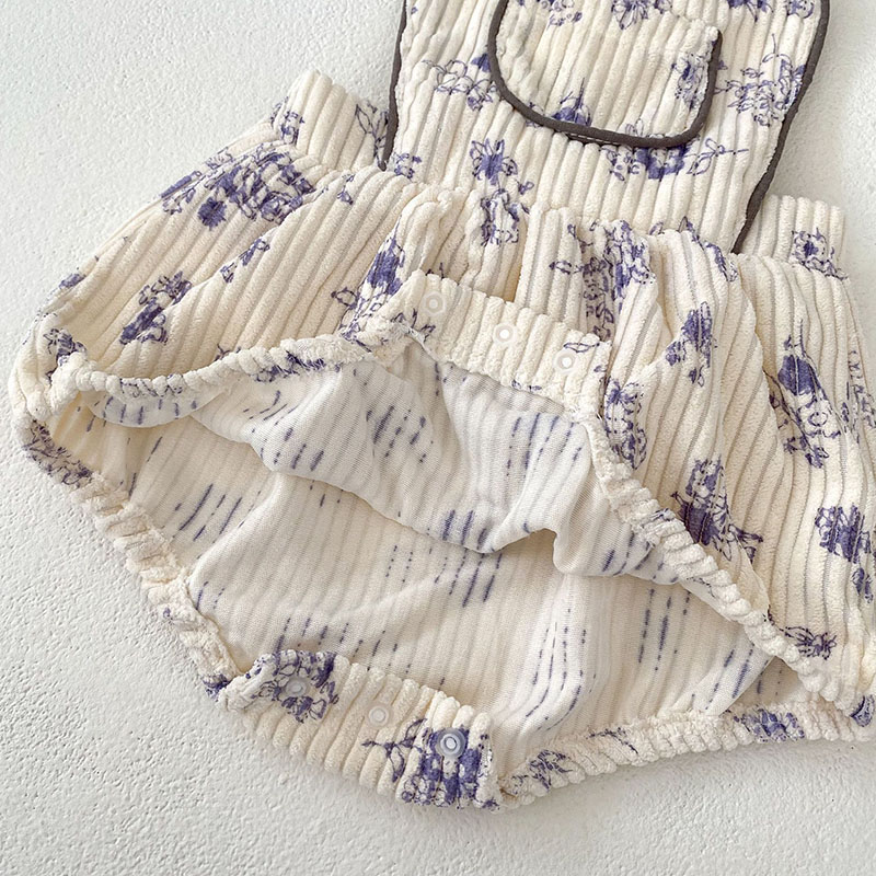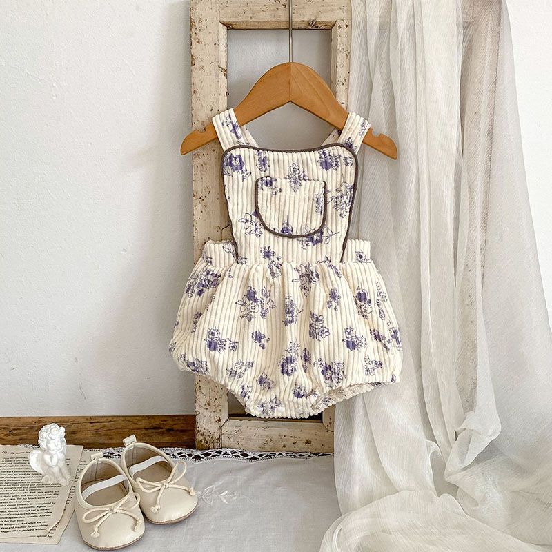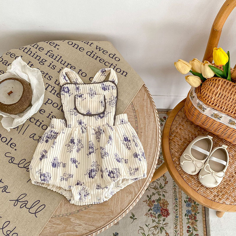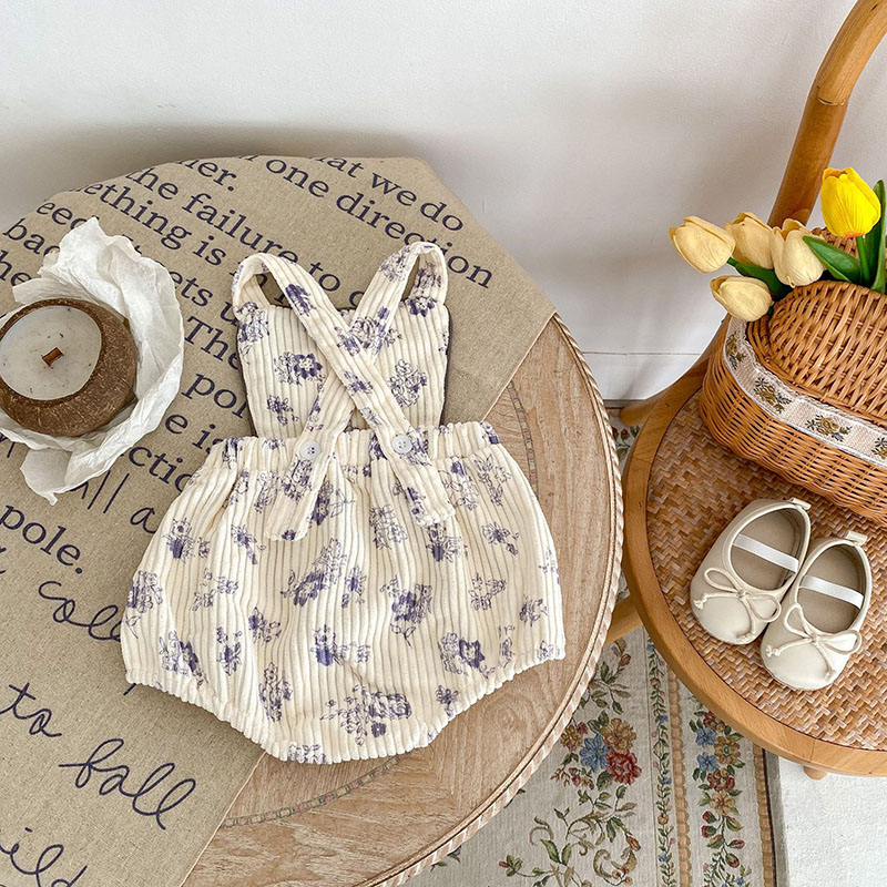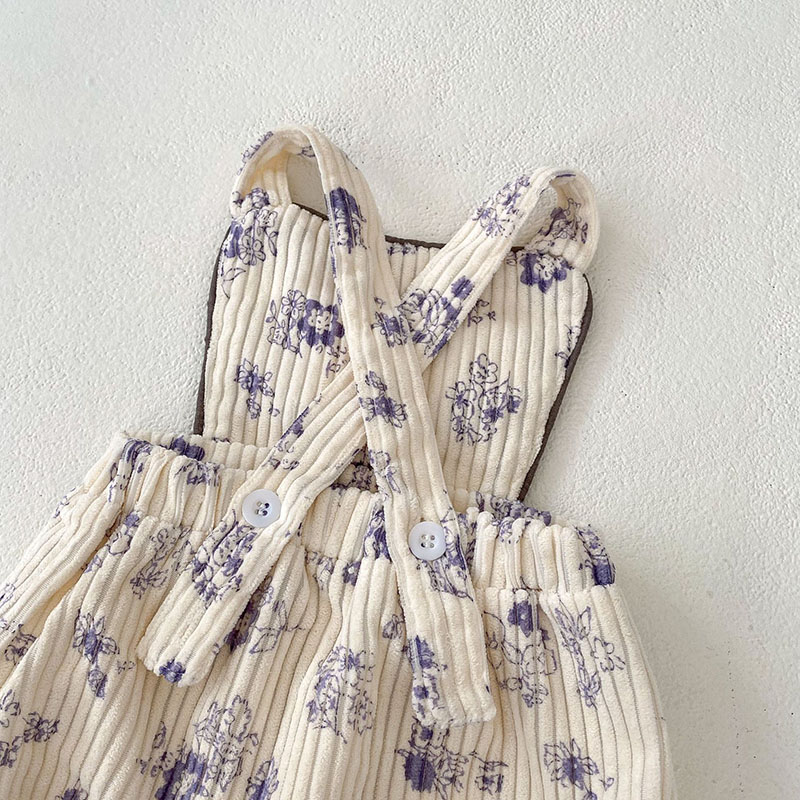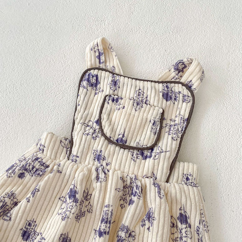 秋冬新作 ガールズ冬 子供服 カバーオール 連体服 サロペット 花柄 コーデュロイ ロンパース 66-90