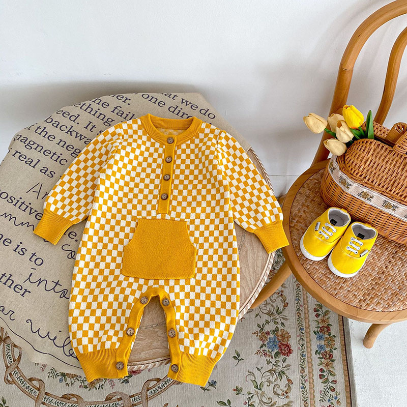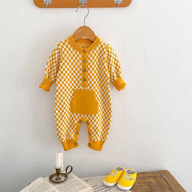 現在カテゴリ:全て商品 > 秋冬新作 ユニセックス 子供服 カバーオール 連体服 チェック柄 ニット セーター ロンパース 66-90