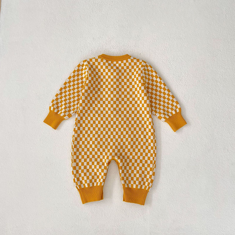 秋冬新作 ユニセックス 子供服 カバーオール 連体服 チェック柄 ニット セーター ロンパース 66-90