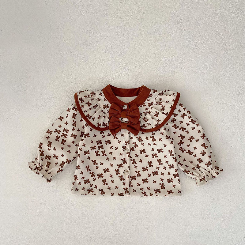 現在カテゴリ:全て商品 > ガールズ 秋冬新作 ブラウス フリル リボン クローバー ロングパンツ シャツ+ズボン 66-100