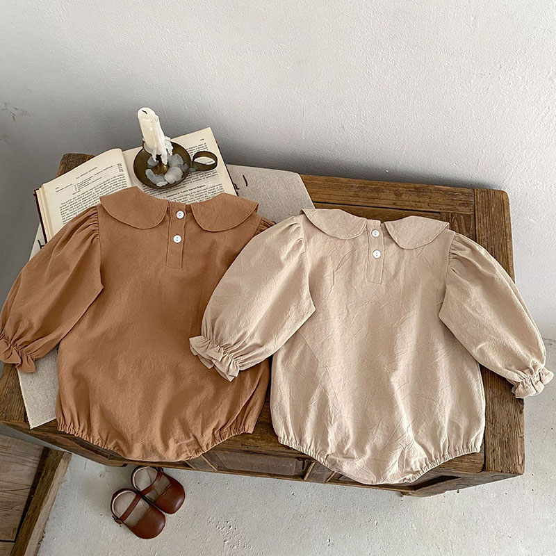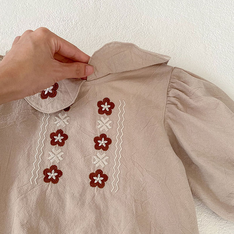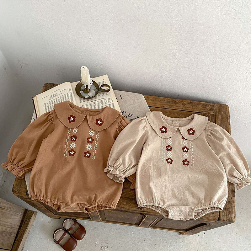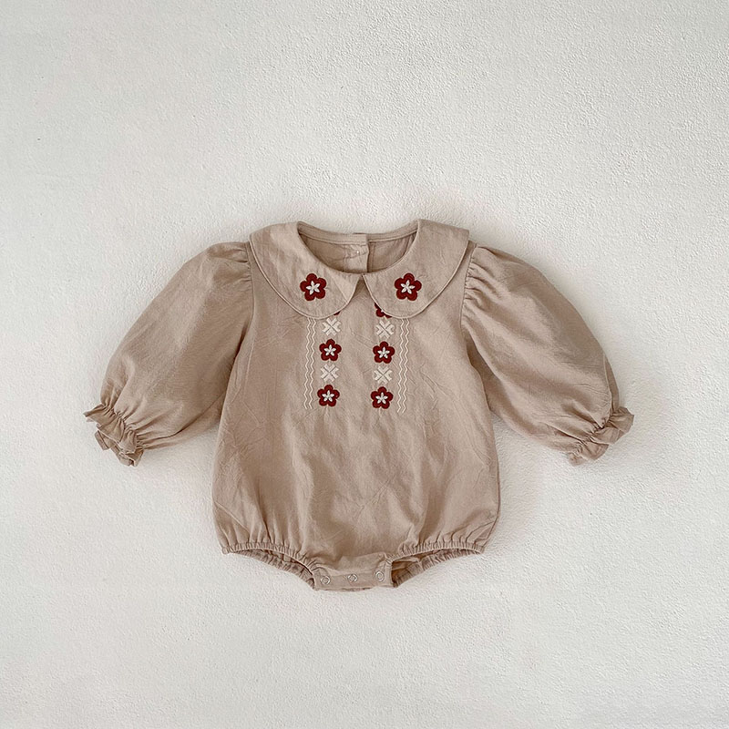 秋冬新作 ガールズ 連体服 フリル 花柄刺繍 オシャレ 0-3歳 ロンパース カバーオール 66-90