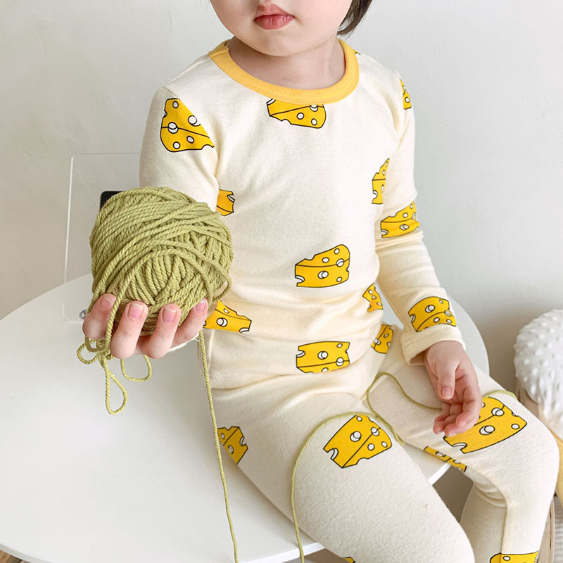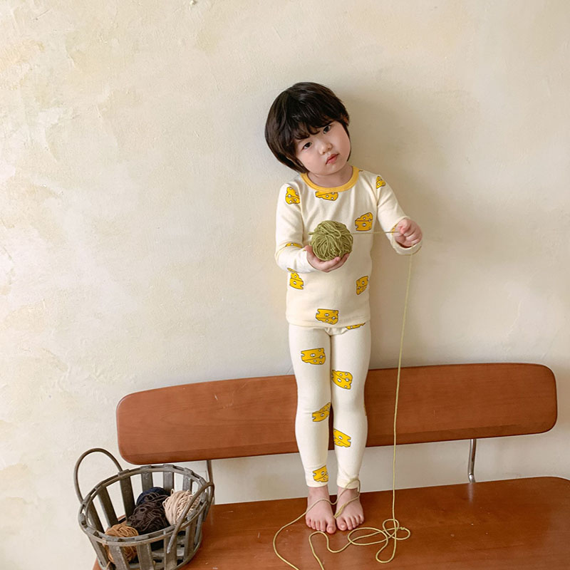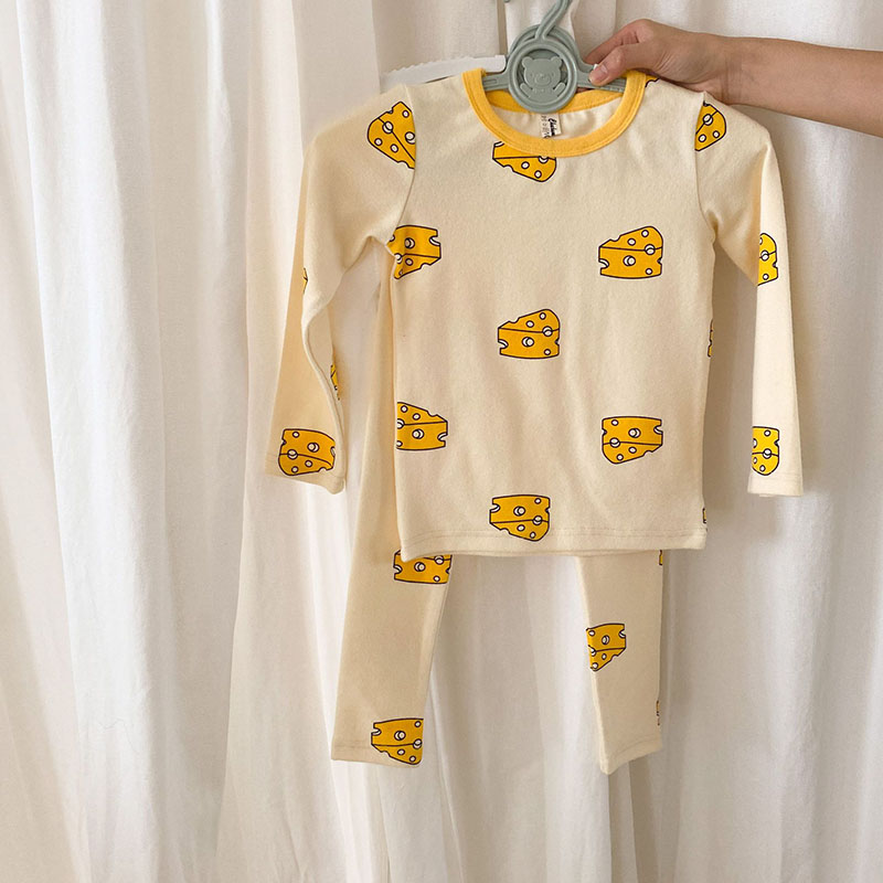 秋冬新作 ユニセックス ルームウェア 保温インナー ボディスーツ チーズ Tシャツ+ズボン 80-150