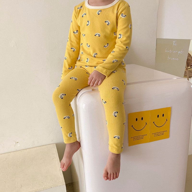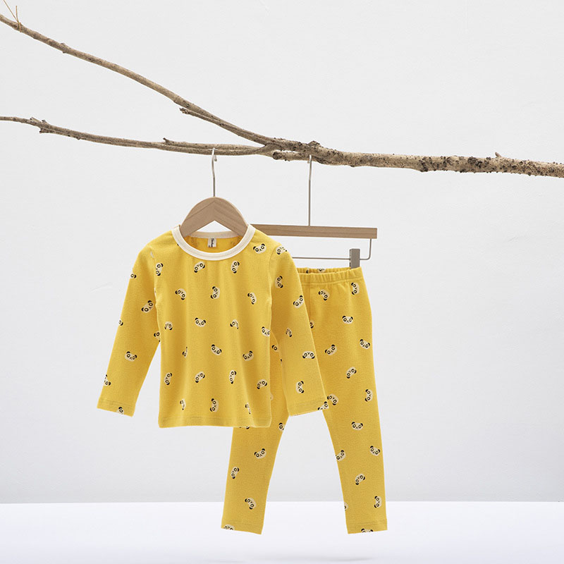 秋冬新作 ユニセックス ルームウェア 保温インナー ボディスーツ パンダ Tシャツ+ズボン 80-150