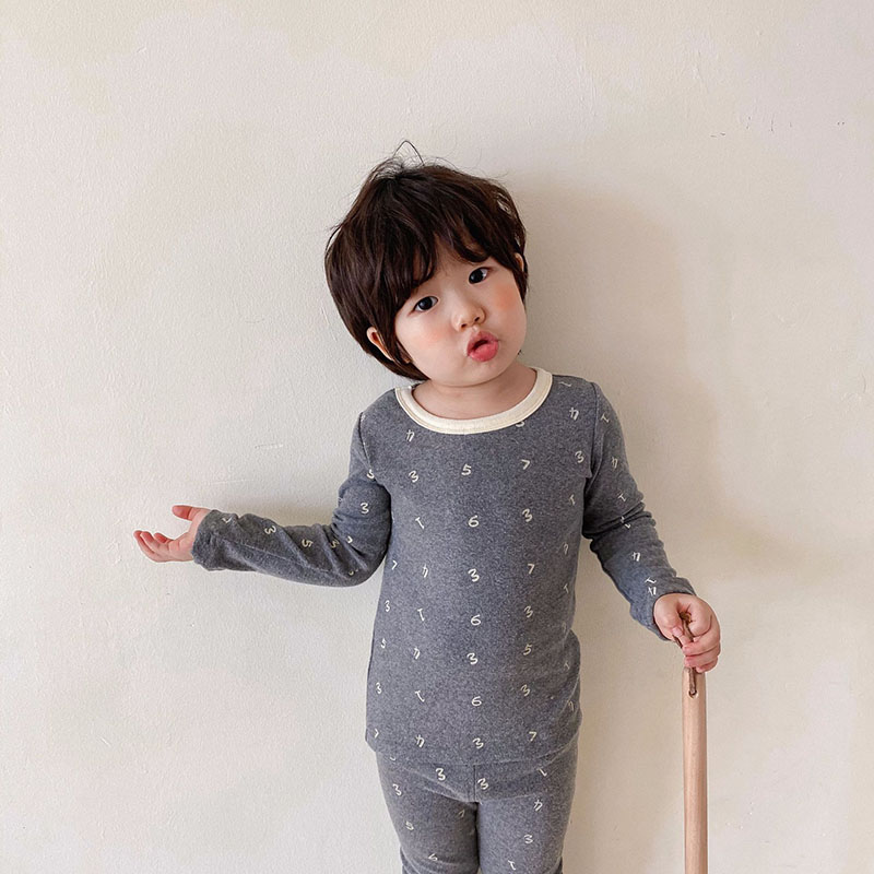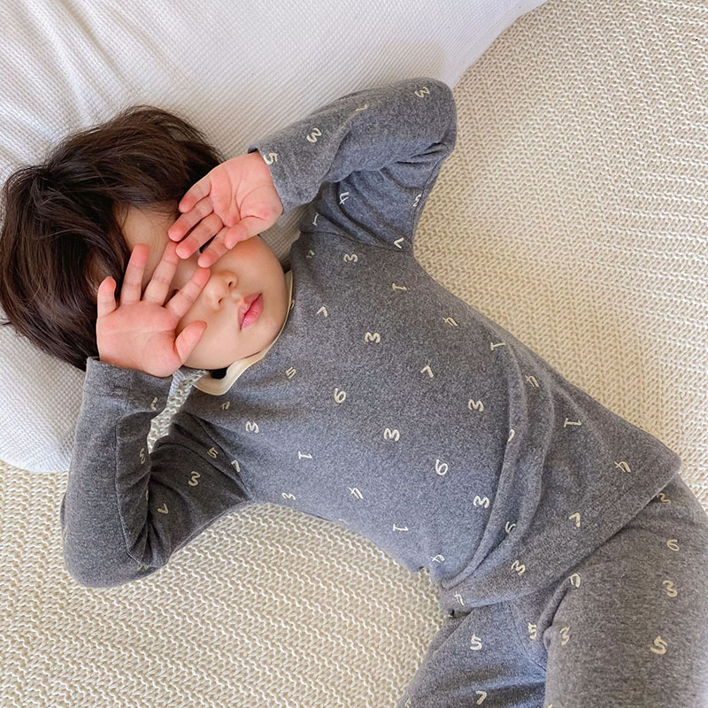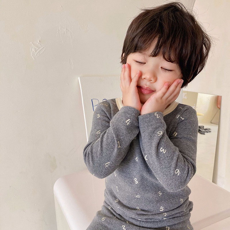 秋冬新作 ユニセックス ルームウェア 保温インナー ボディスーツ 数字 Tシャツ+ズボン 90-130