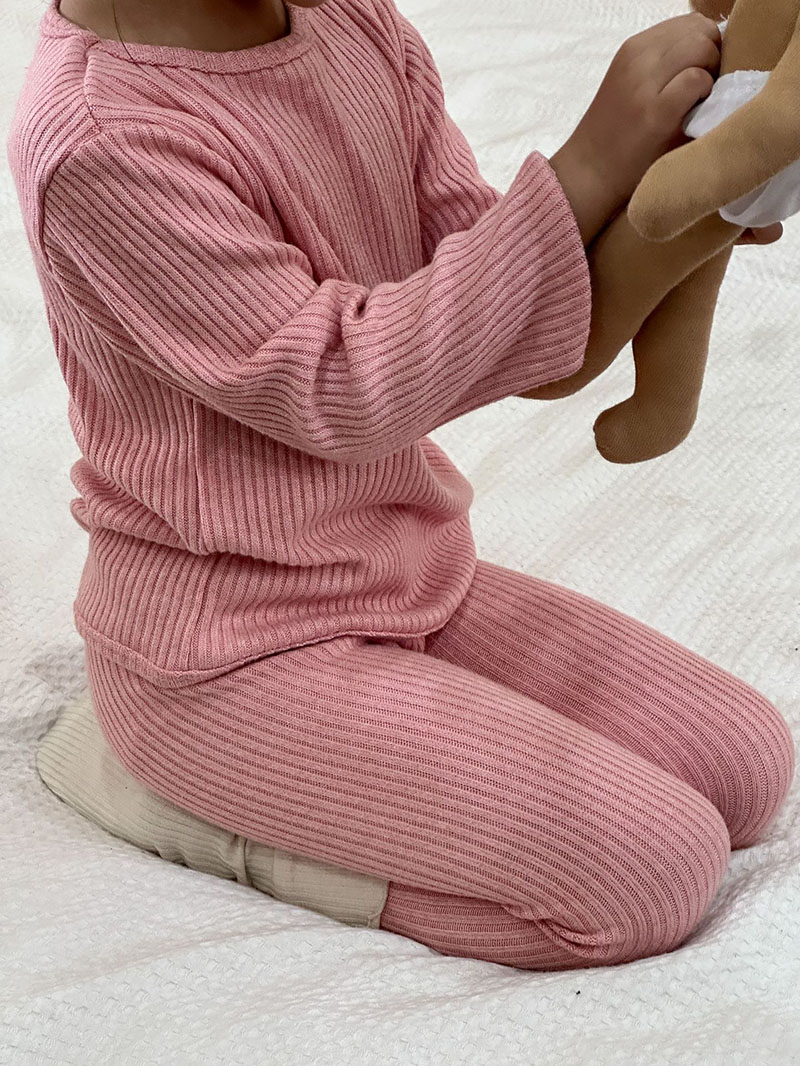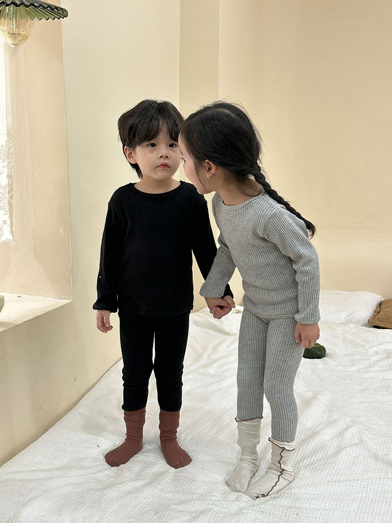 秋冬新作 ユニセックス ルームウェア 保温インナー ボディスーツ メリヤス Tシャツ+ズボン 80-150