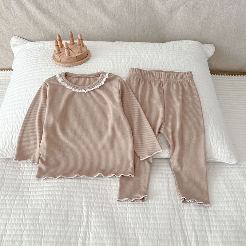 秋冬新作 ユニセックス ルームウェア 保温インナー ボディスーツ フリル Tシャツ+ズボン 66-100