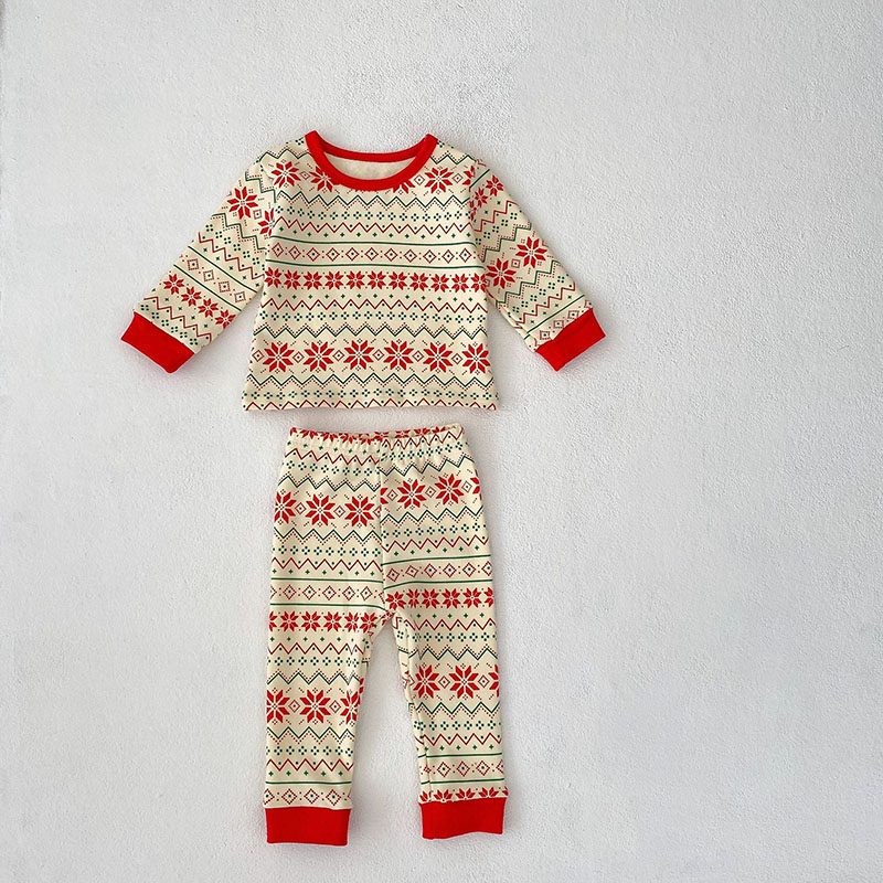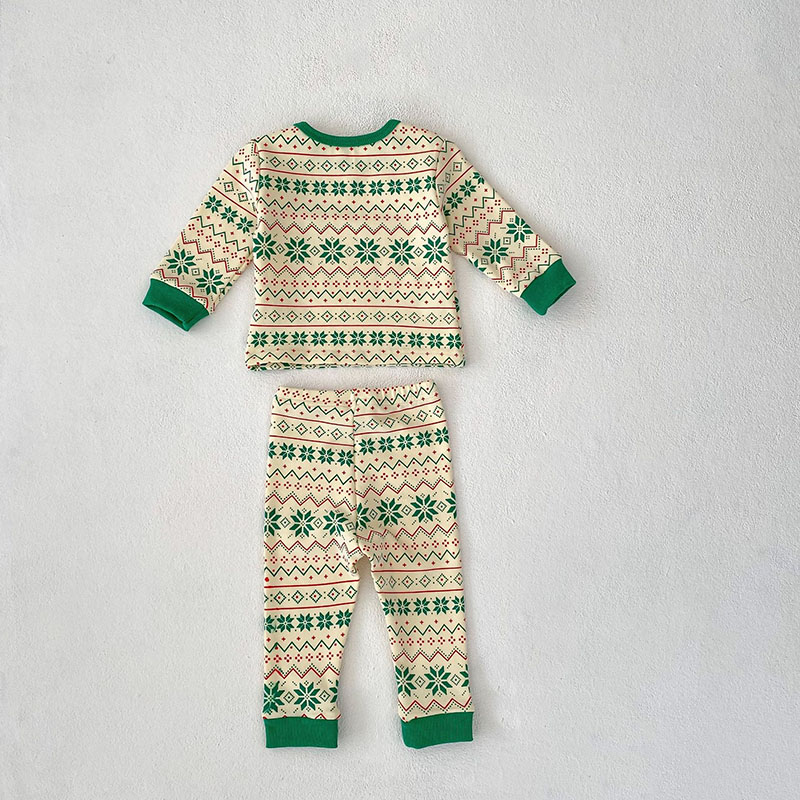 秋冬新作 ユニセックス ルームウェア 保温インナー ボディスーツ 幾何学柄 Tシャツ+ズボン 66-100