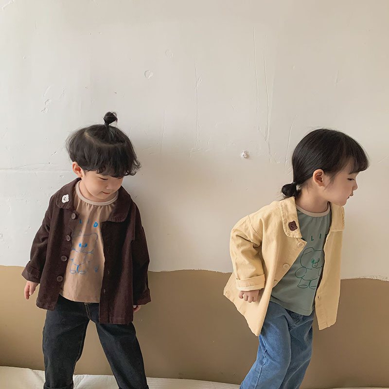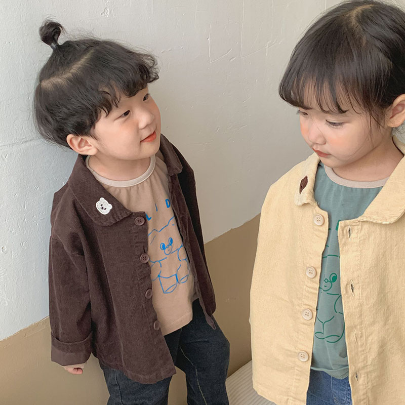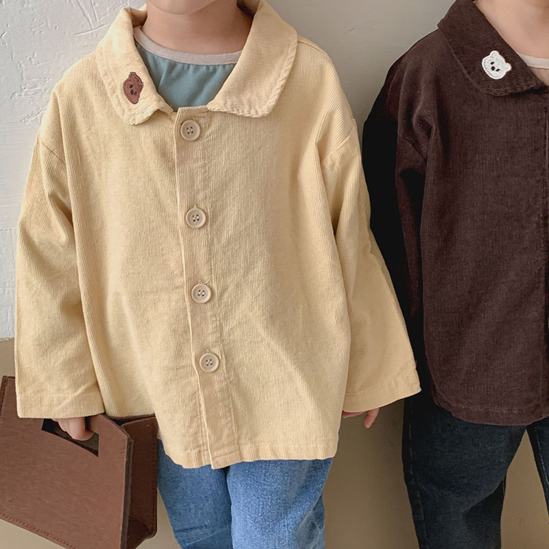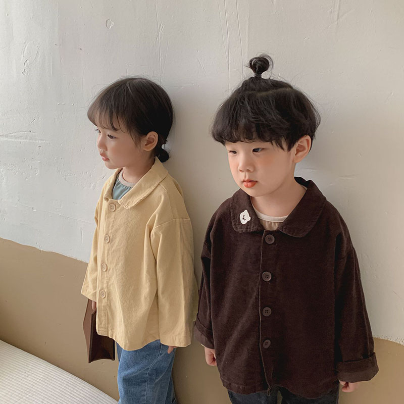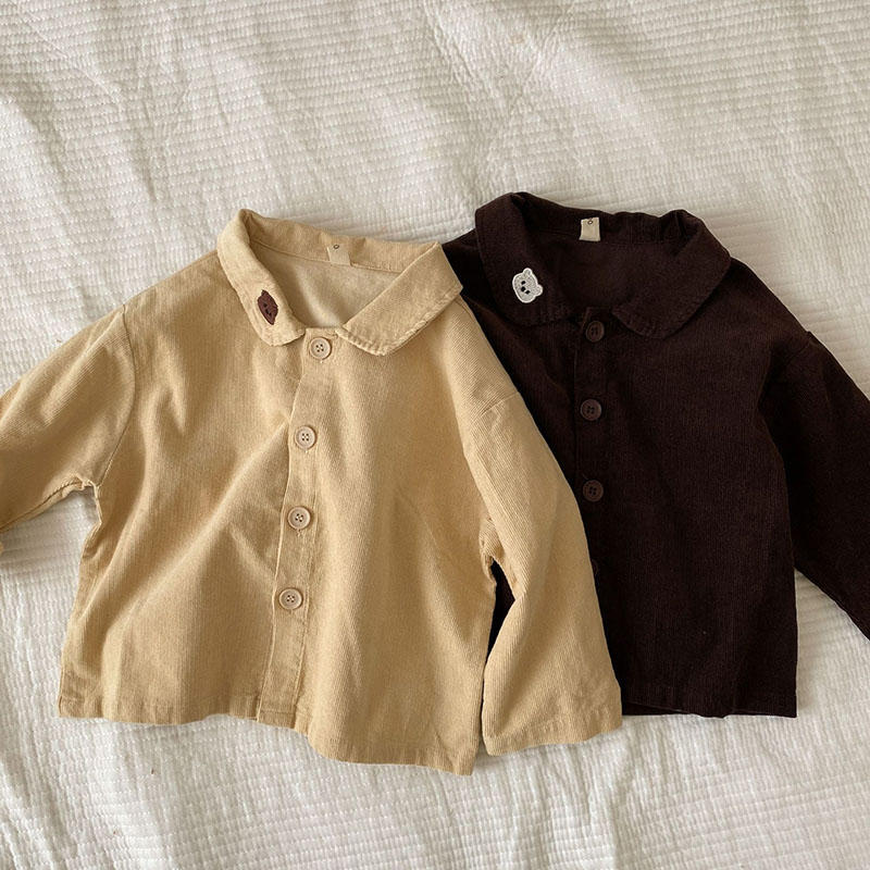 秋冬新作 ナチュラル系 ユニセックス コーデュロイ シャツ トップス ロングスリープ ブラウス 80-130