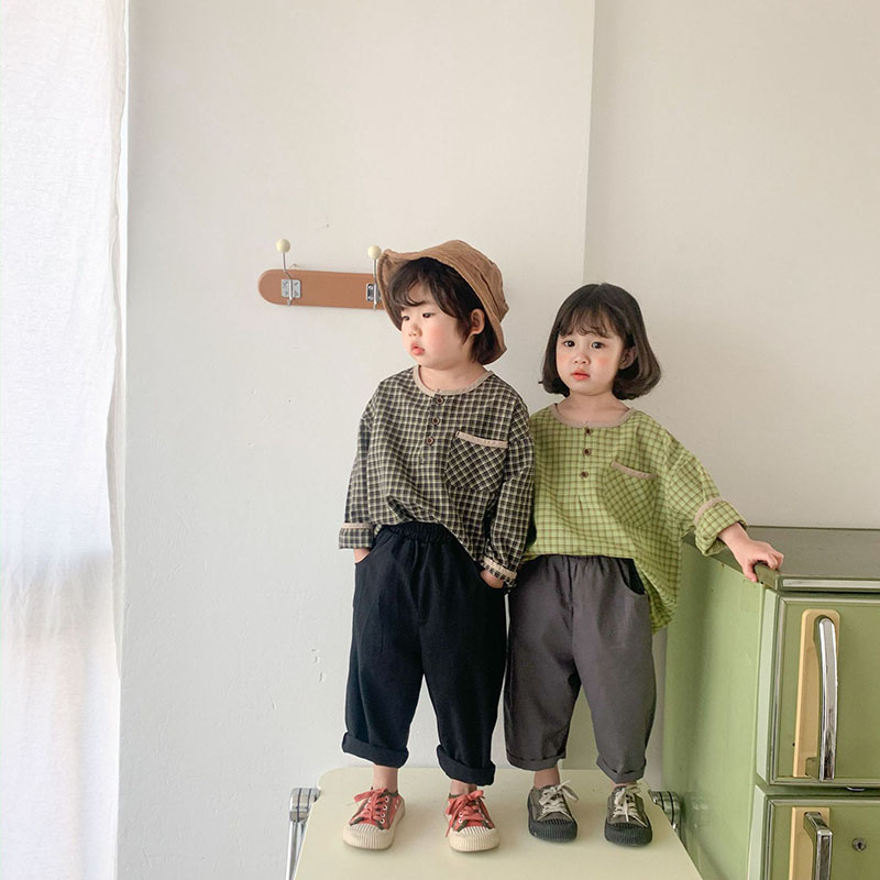 秋冬新作 ナチュラル系 ユニセックス トップ チェック柄 トレーナー シャツ上着 ブラウス 80-130