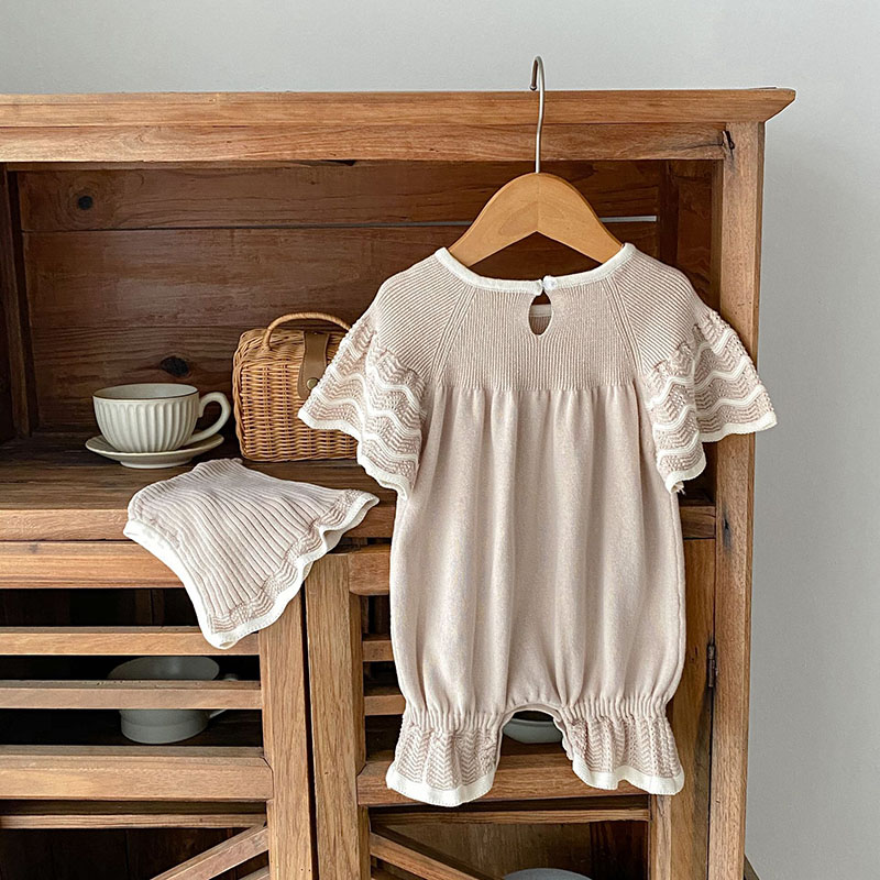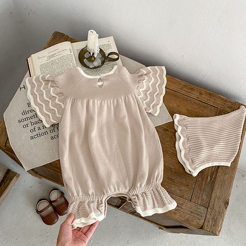 秋冬新作 ガールズ冬 子供服 カバーオール 連体服 0-3歳 フリル ニット 帽子 ロンパース 66-90