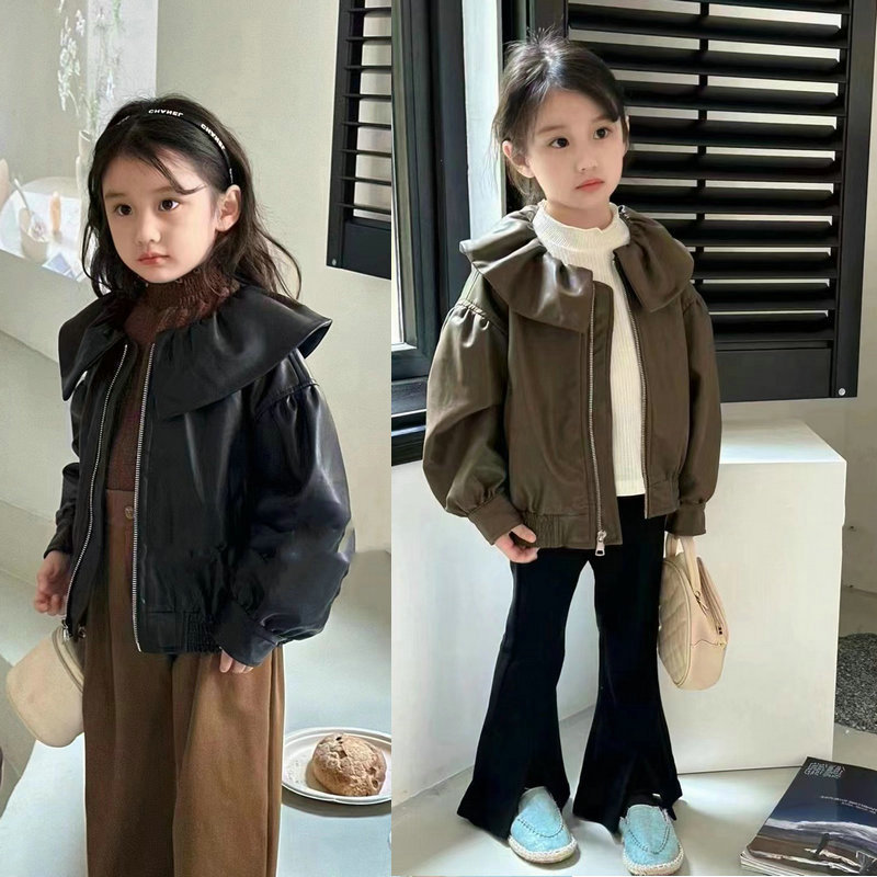オシャレ 3-8歳ガールズ 子供服 秋冬新作 ジャンパー ライダース PU革上着 ブルゾン ジャケット 5-13