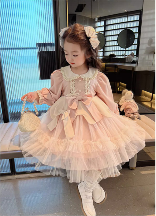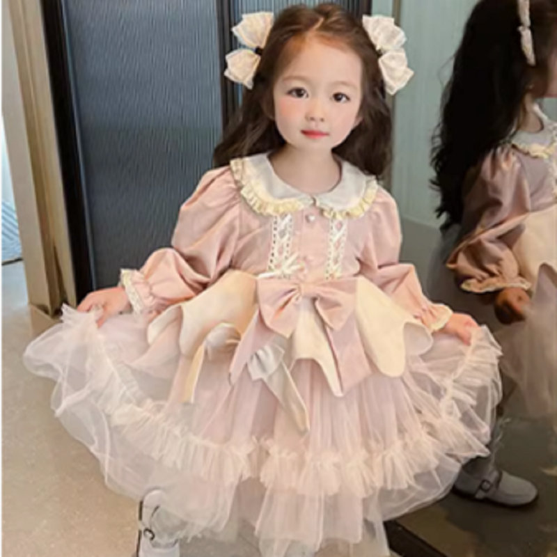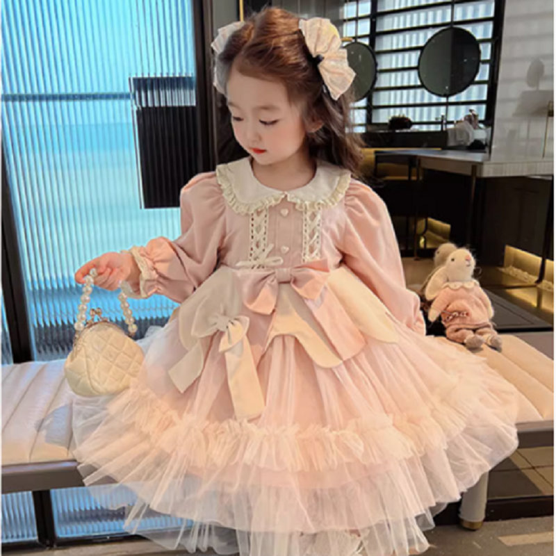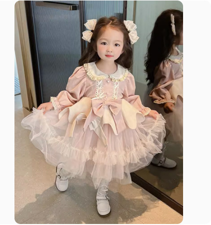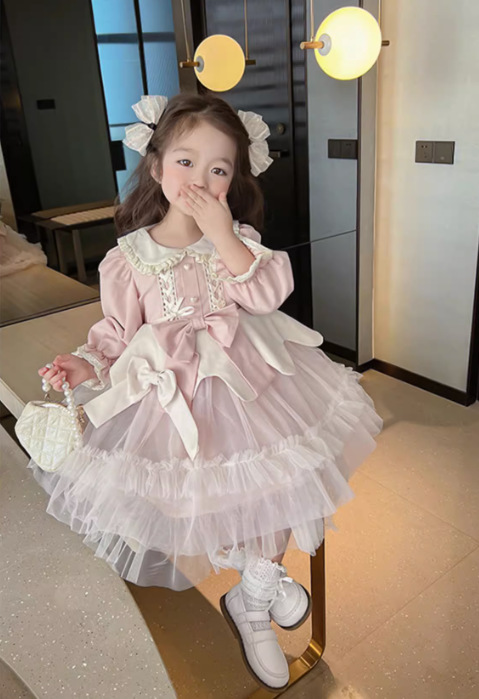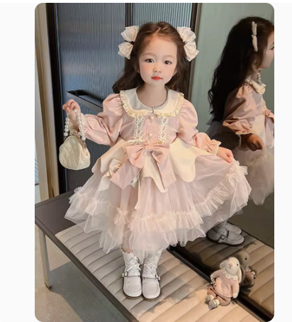 オシャレ 秋冬新作 ガールズ ロリータ リボン レース シフトドレス ワンピース ワンピ 110-140