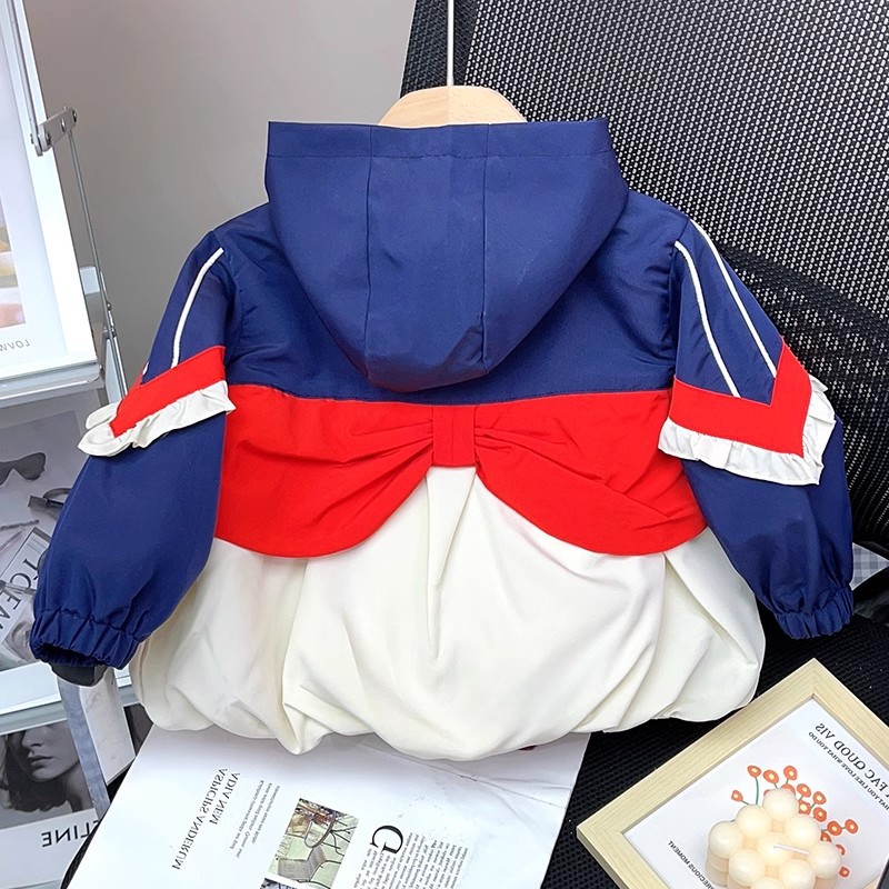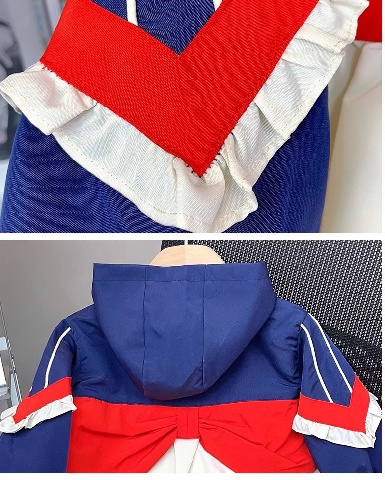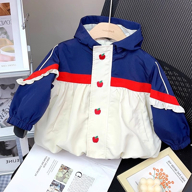 オシャレ春秋 ガールズ 子供服 秋冬新作 リンゴ フリル フード付ジャケット ブレザー ブルゾン上着 5-13