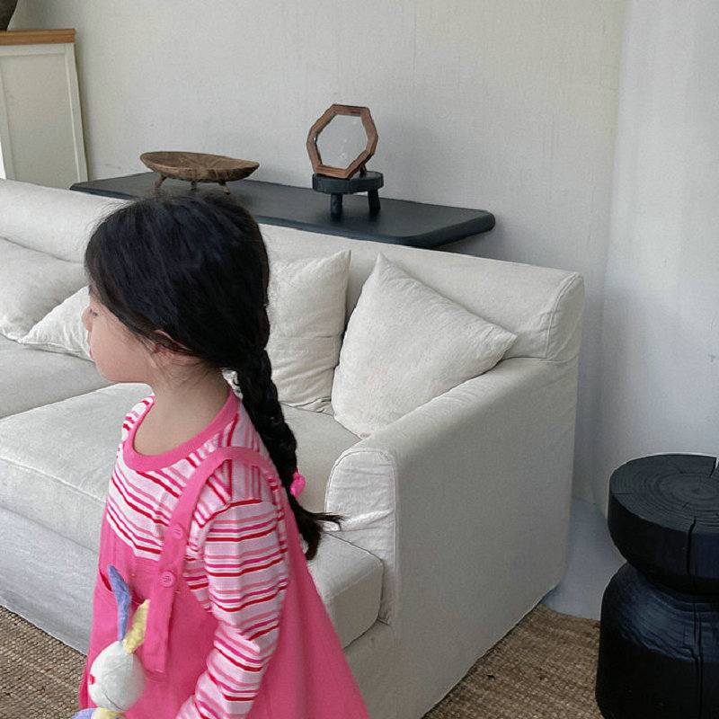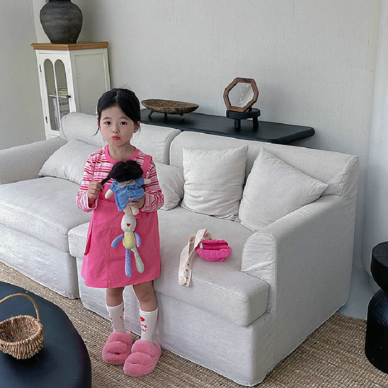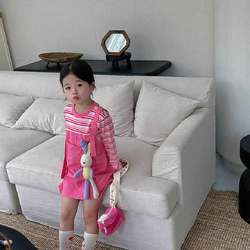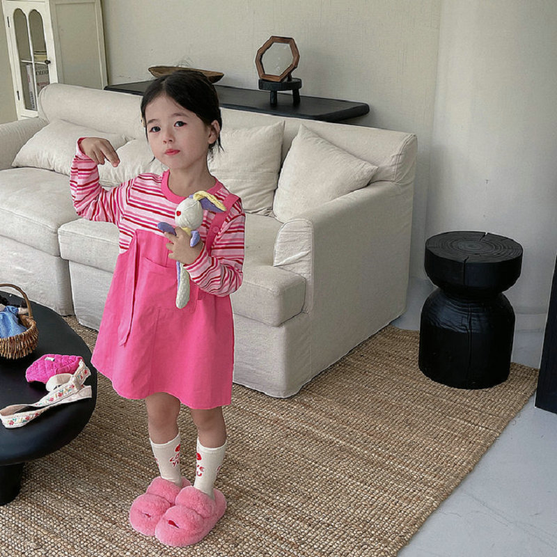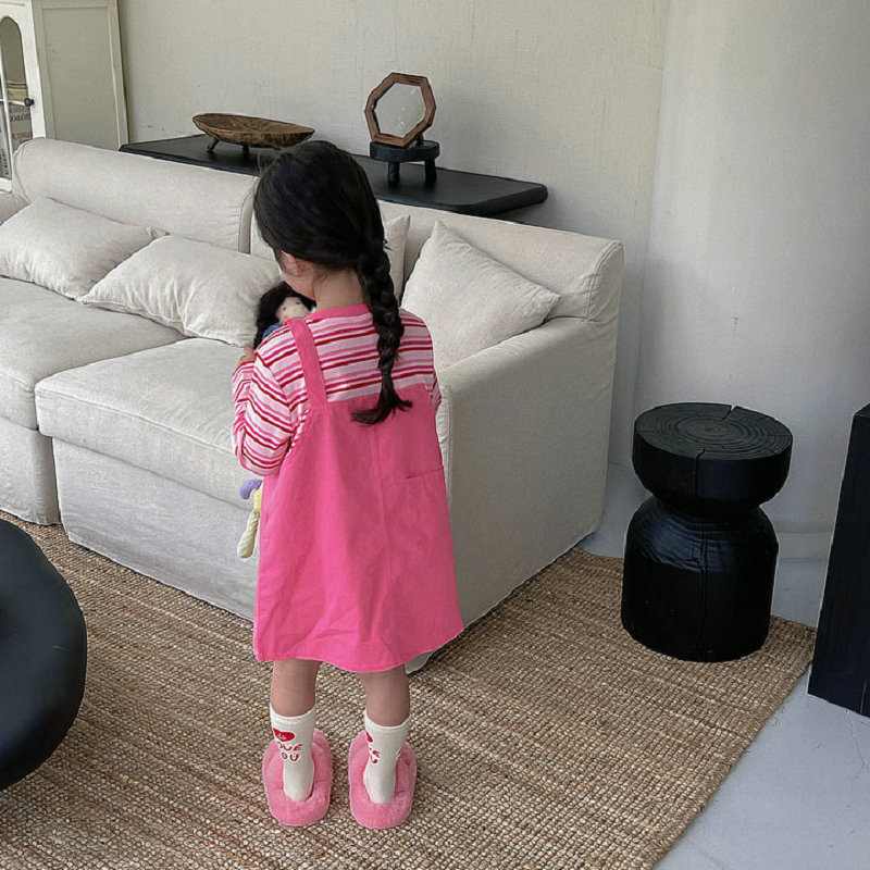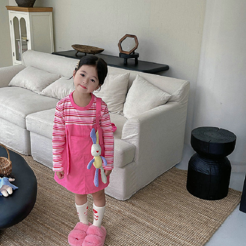 オシャレ春秋 ガールズ ボーダー柄 重ね着風 シフトドレス ドッキングワンピ ワンピース 5-13