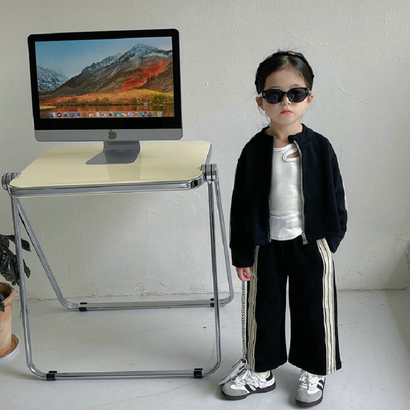 秋冬新作 オシャレ春秋 ガールズ 子供服 ストライプ柄 ブルゾン ワイドパンツ ジャケット+パンツ 5-13