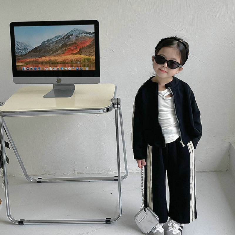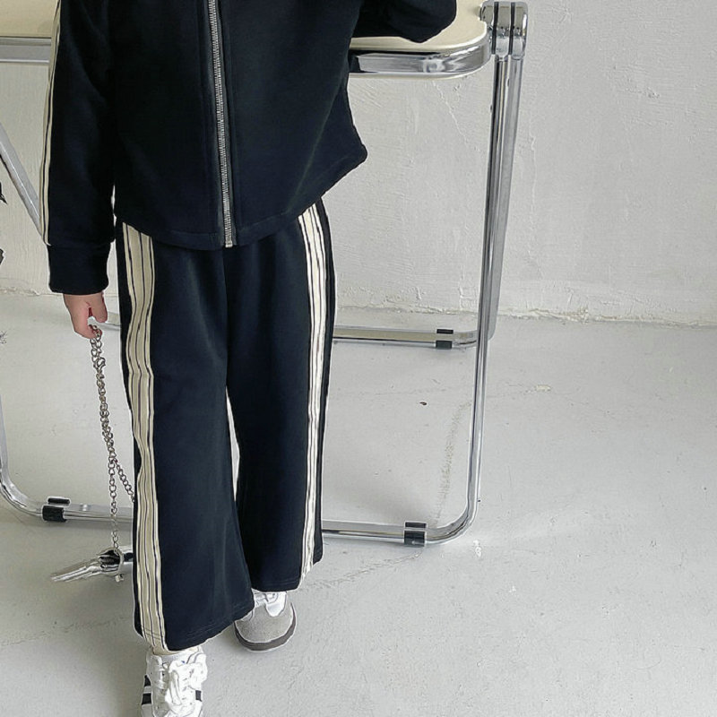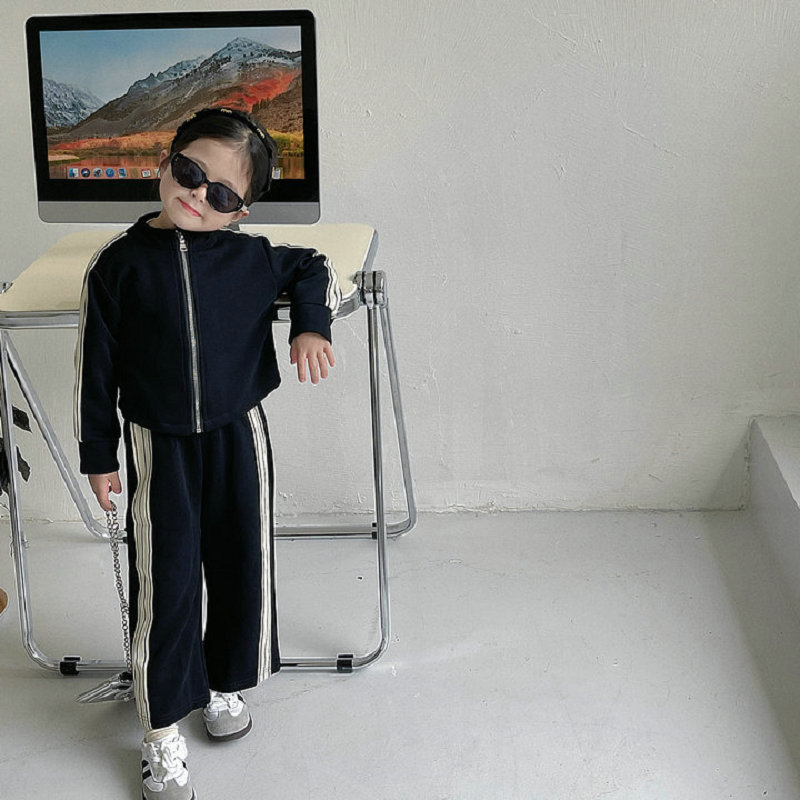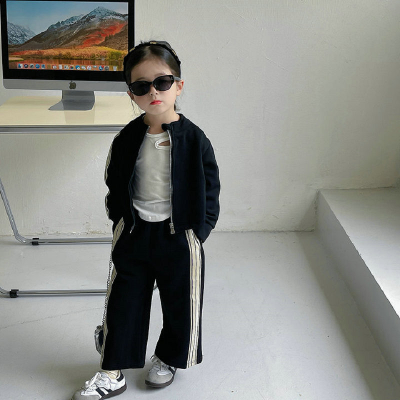 現在カテゴリ:全て商品 > 秋冬新作 オシャレ春秋 ガールズ 子供服 ストライプ柄 ブルゾン ワイドパンツ ジャケット+パンツ 5-13