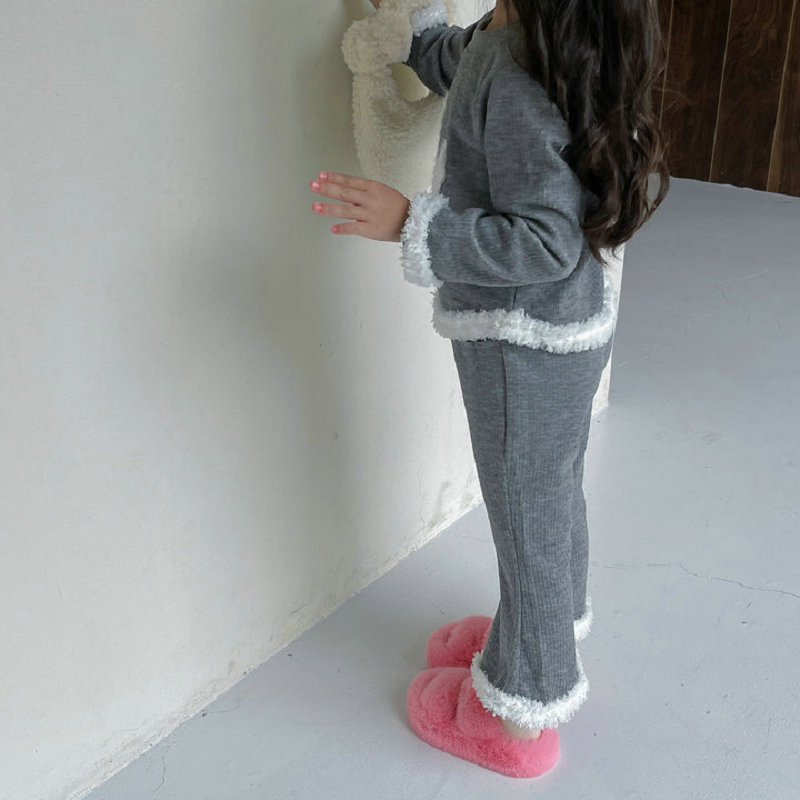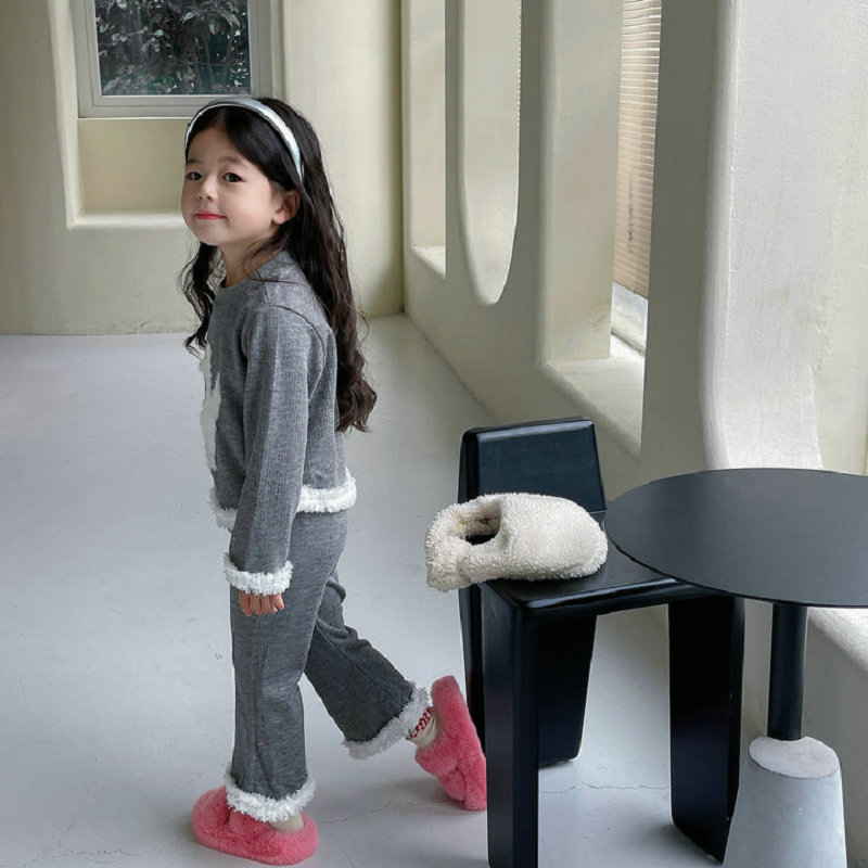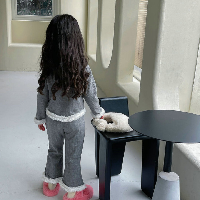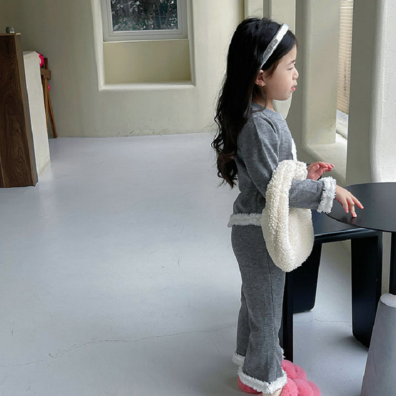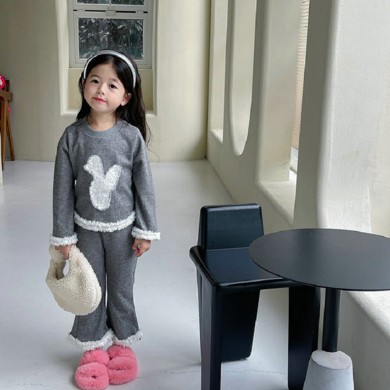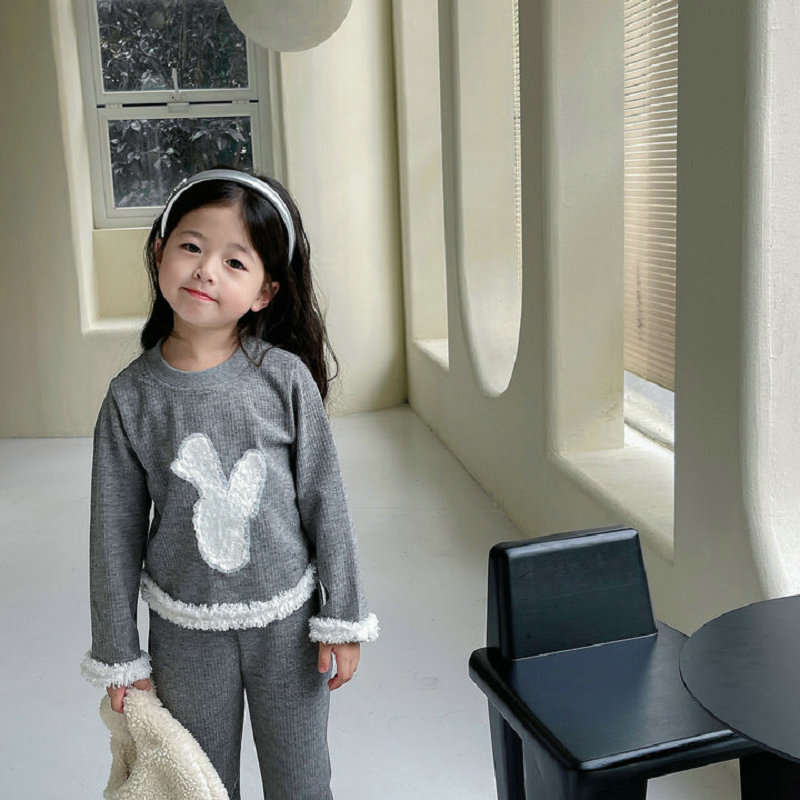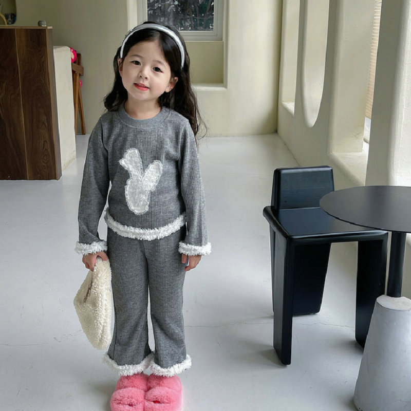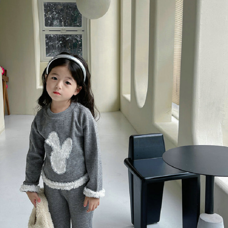 秋冬新作 オシャレ春秋 ガールズ 子供服 ボア フーディ ウサギ プルオーバー Tシャツ+パンツ 5-13