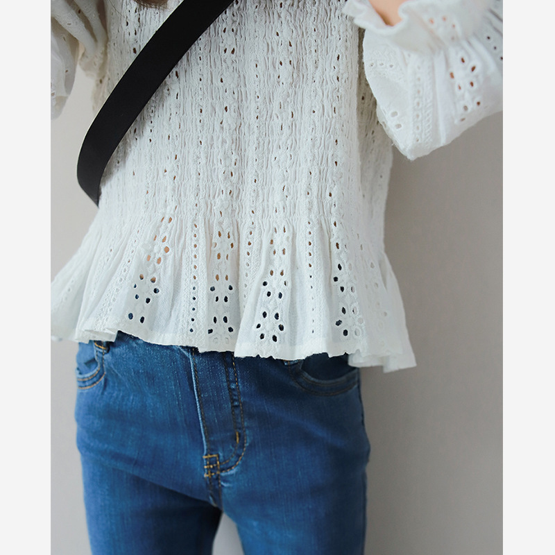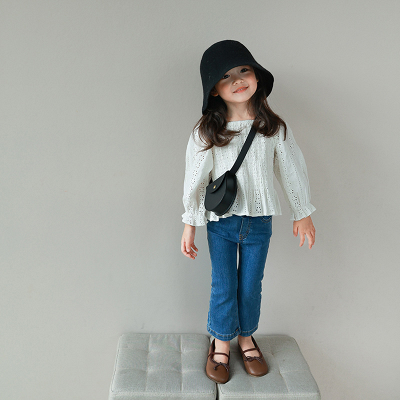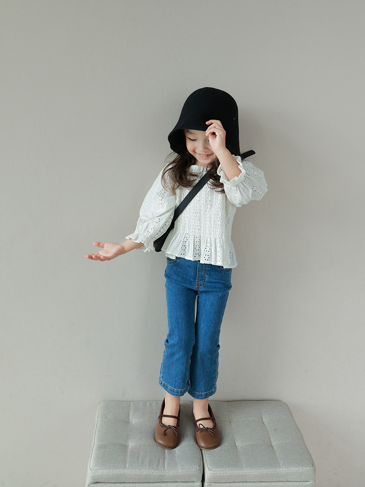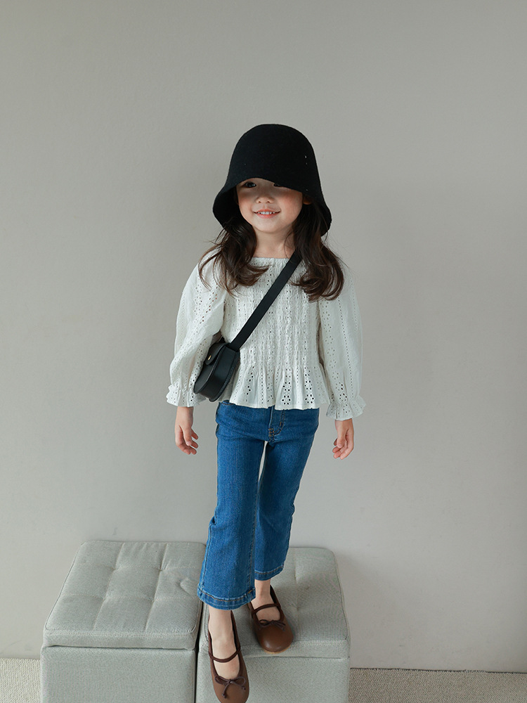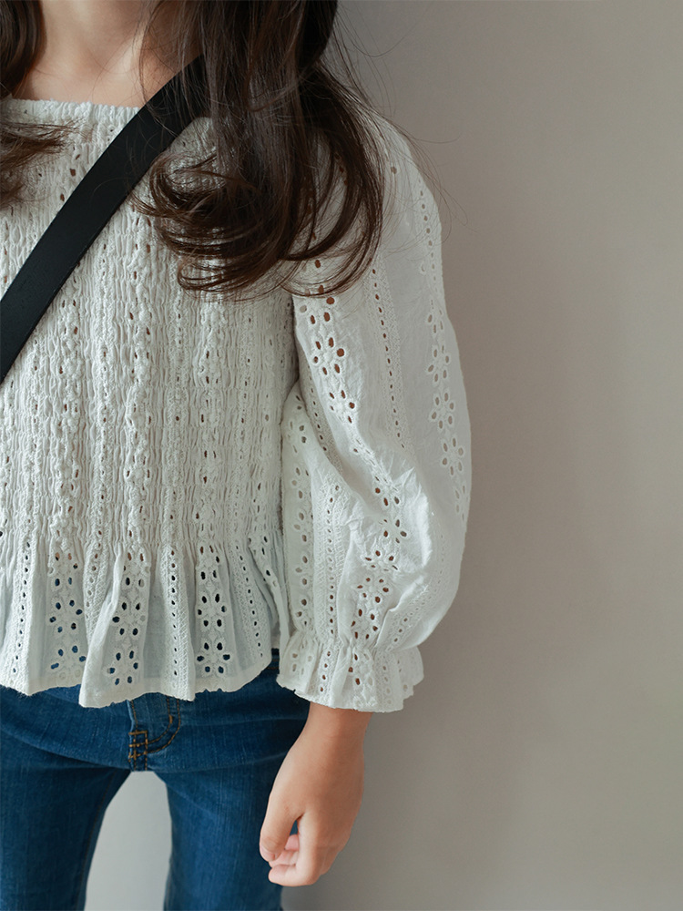 秋新作 ガールズ オシャレ春秋 ロングスリーブ ブラウス シャツ 花柄刺繍 フリル トップ 90-140