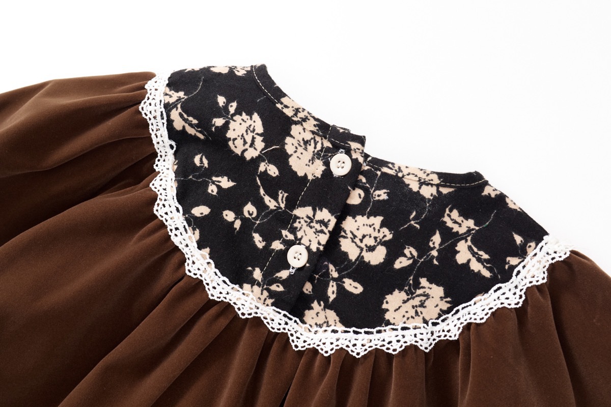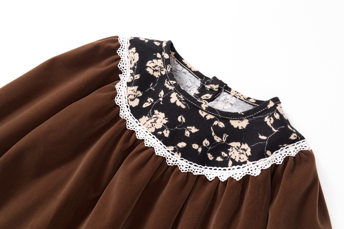 オシャレ春秋 ガールズ 子供服 シフトドレス フリル ワンピース ベルベット 花柄 ワンピ 90-140