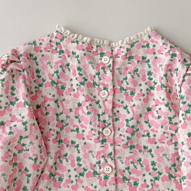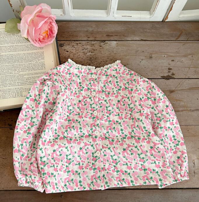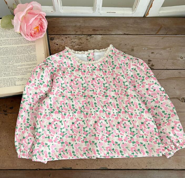 「2023秋」子供服★トップス★長袖シャツ★韓国風子供服★キッズ女の子★花柄★80-130CM