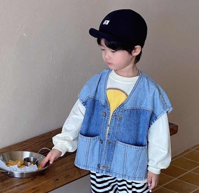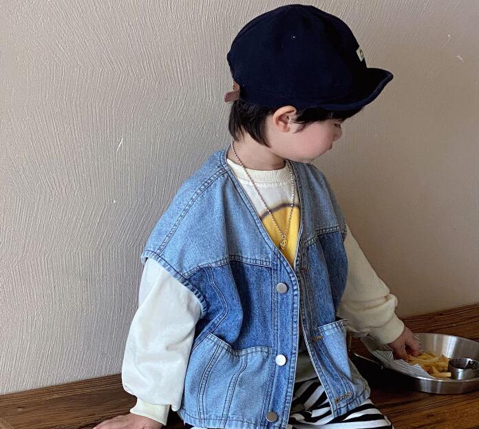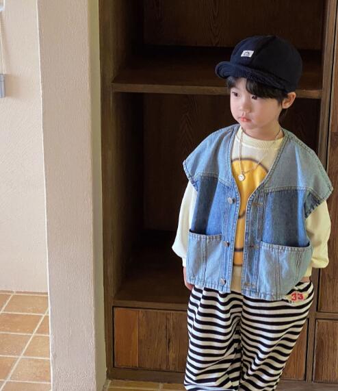 「2023秋」子供服★トップス★デニム★チョッキ★韓国風子供服★キッズ★男女兼用★90-140CM