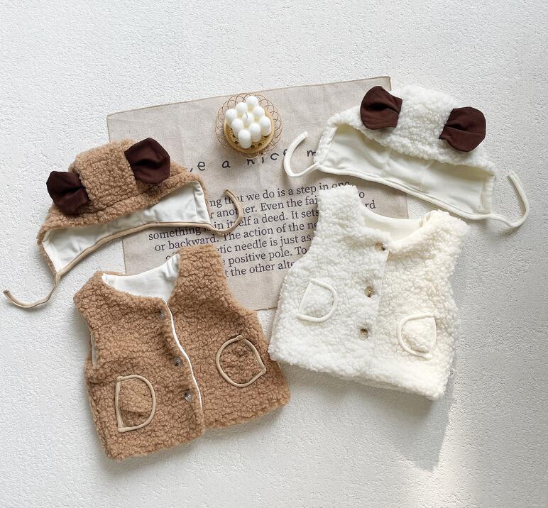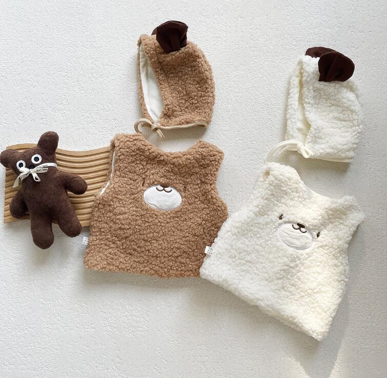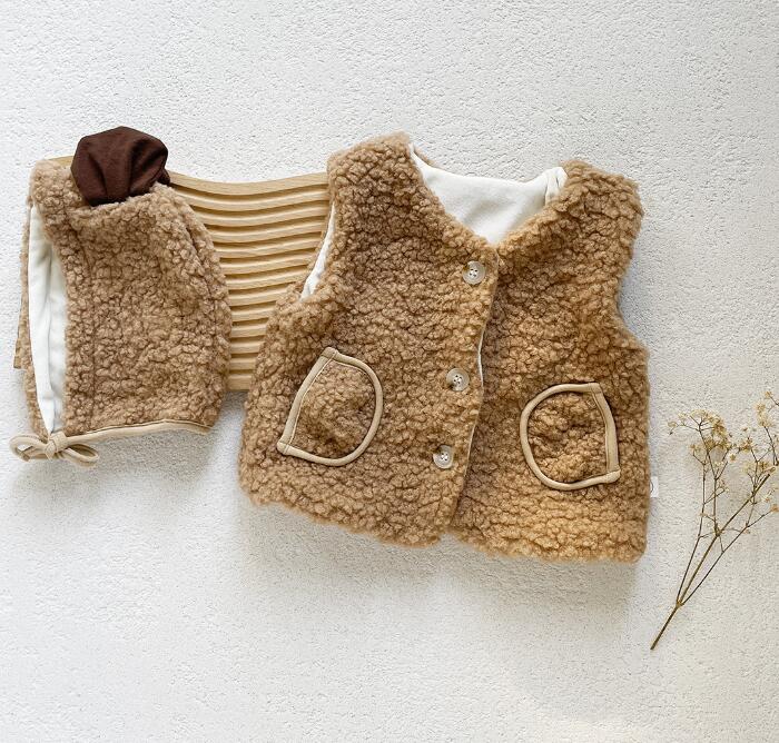 2023秋冬新品★ベビー服★ボアベスト+帽子★66-90cm★2色