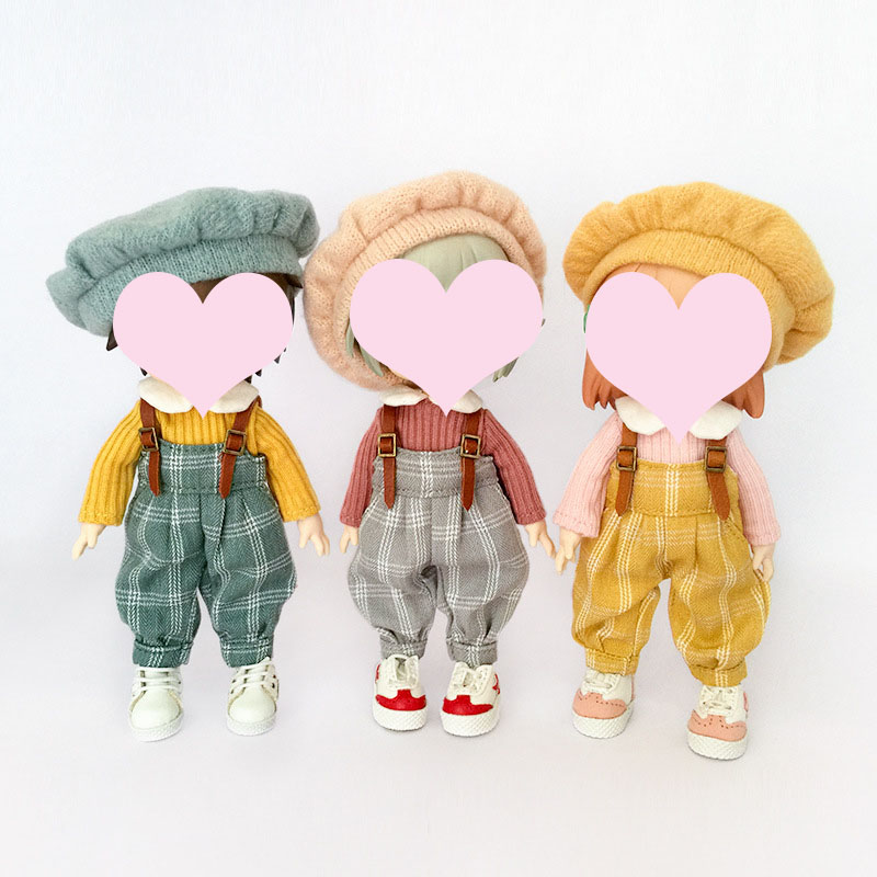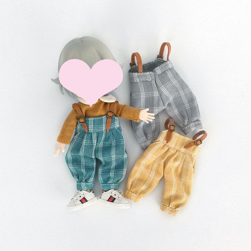 ドール用衣装 人形doll 着せ替え ob11/BJD/blythe/DDF/ymy/pd9/GSC チェック柄 サロペット ロングパンツ