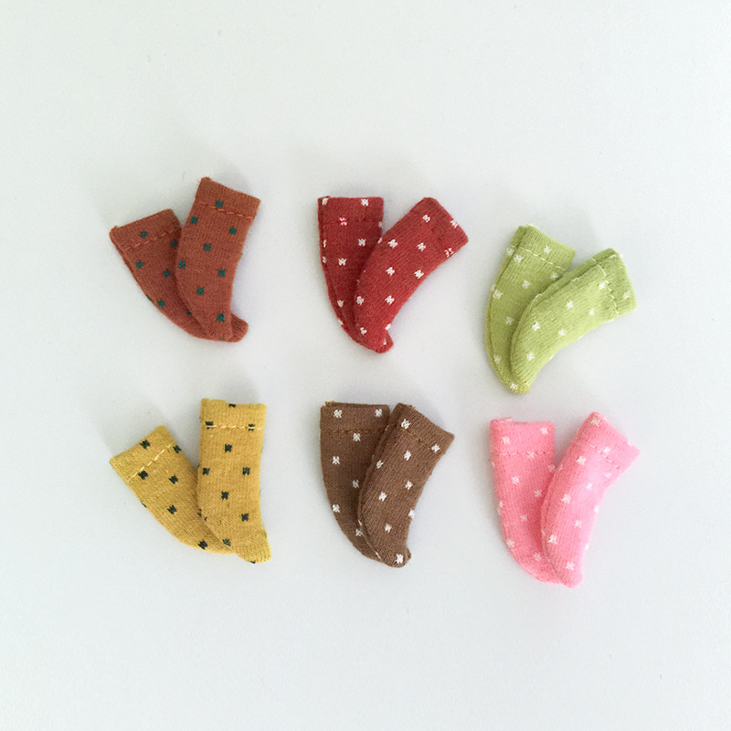 現在カテゴリ:全て商品 > ドール用衣装 人形doll 着せ替え ob11/BJD/blythe/DDF/ymy/pd9/GSC 靴下 ソックス ドット柄 6色