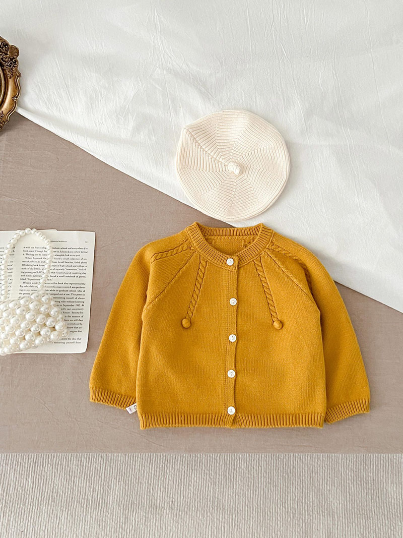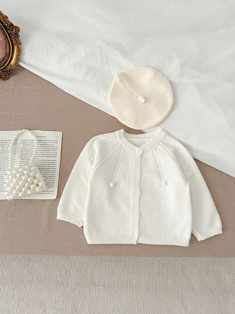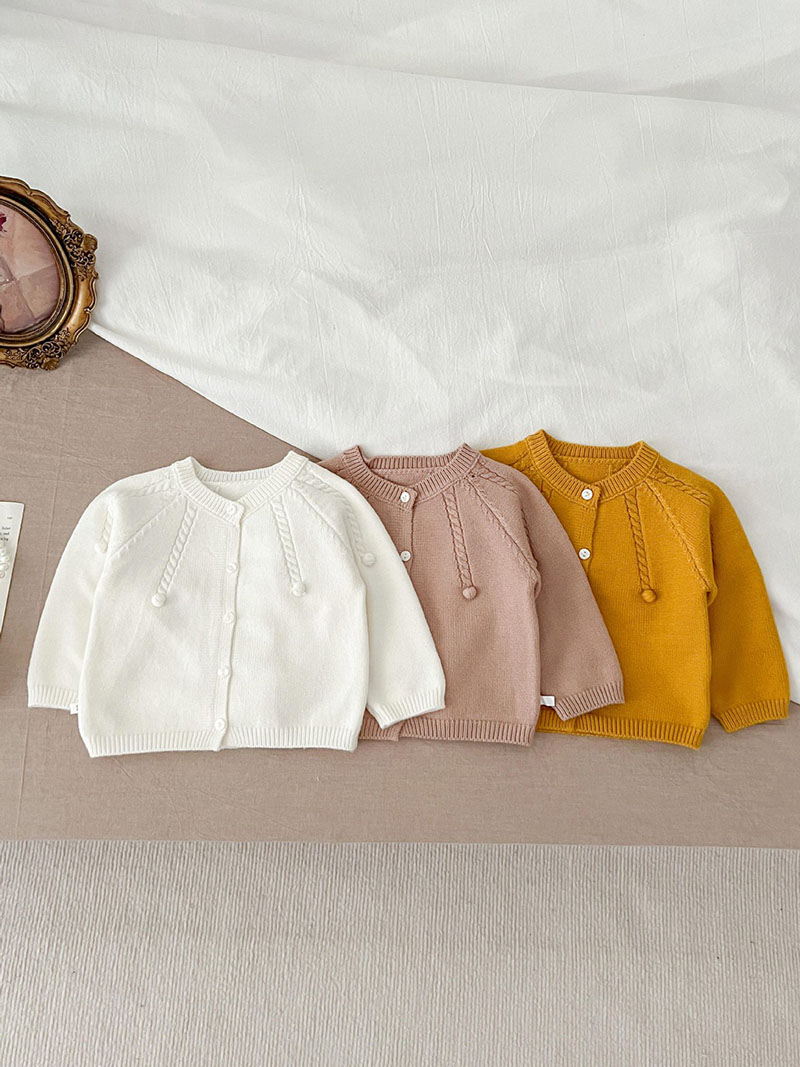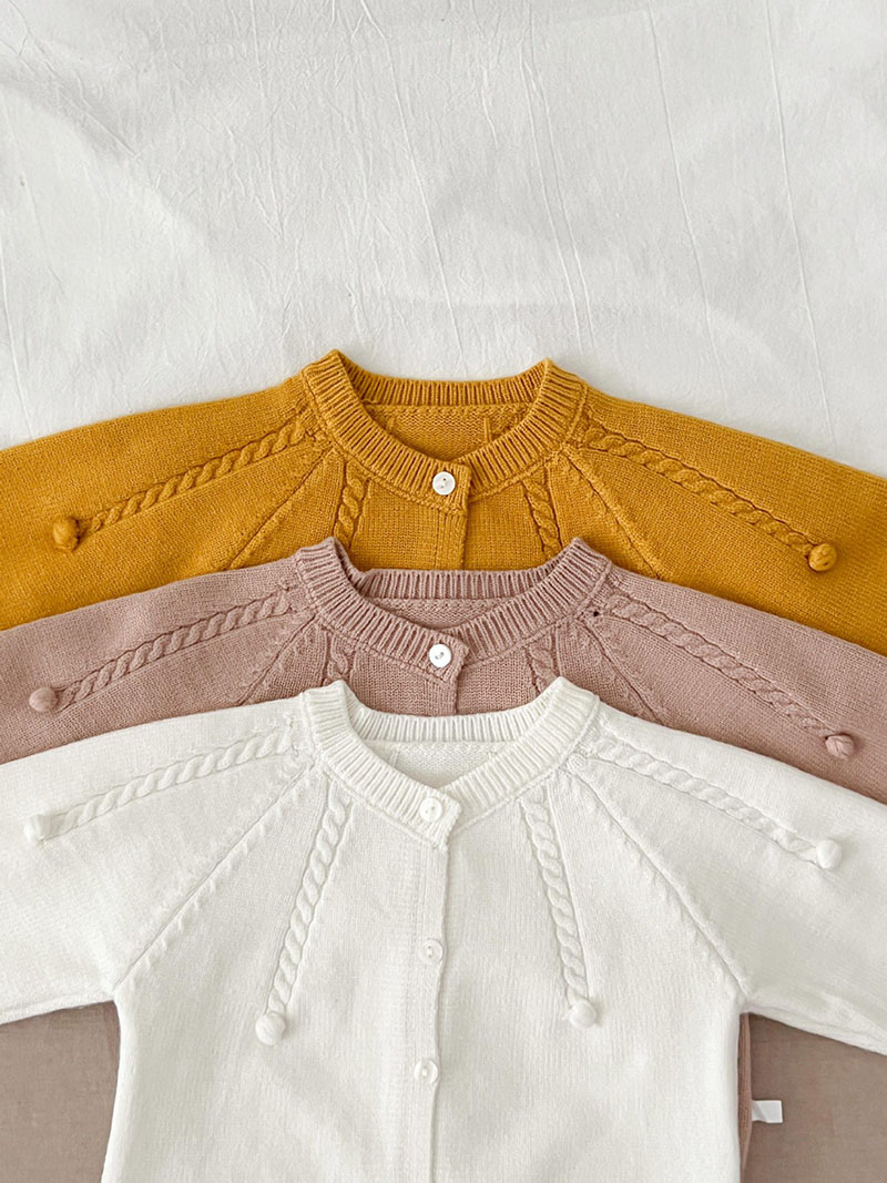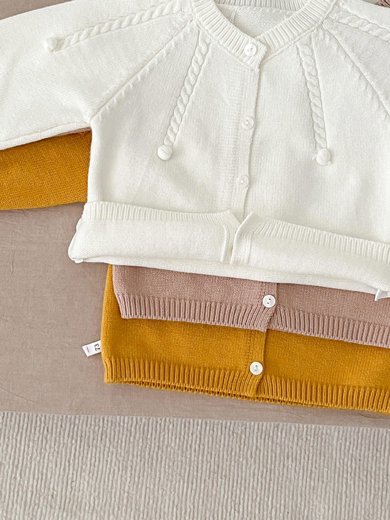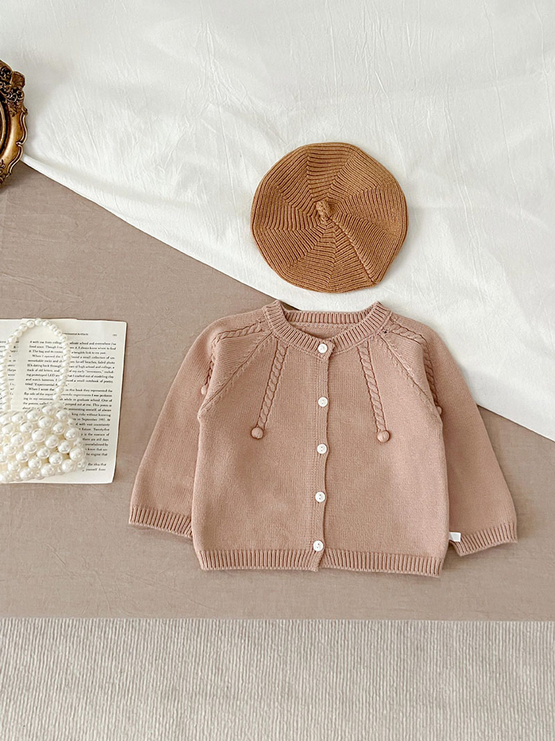 秋冬新作 ユニセックス 子供服 ニット上着 ポンポン ジャケット カーディガン セーター 66-100