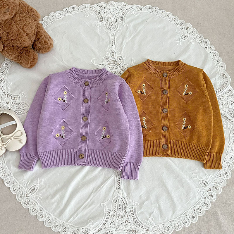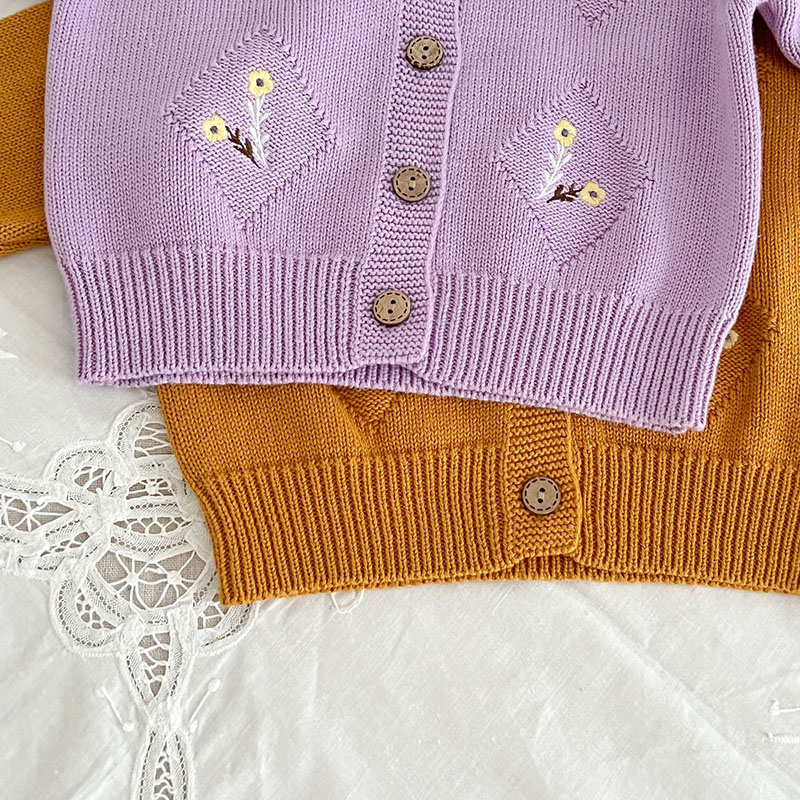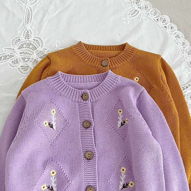 秋冬新作 ガール 子供服 レトロ ニット上着 花柄 ジャケット カーディガン セーター 66-100