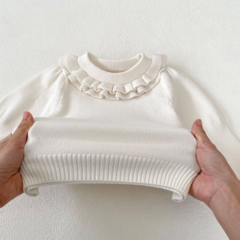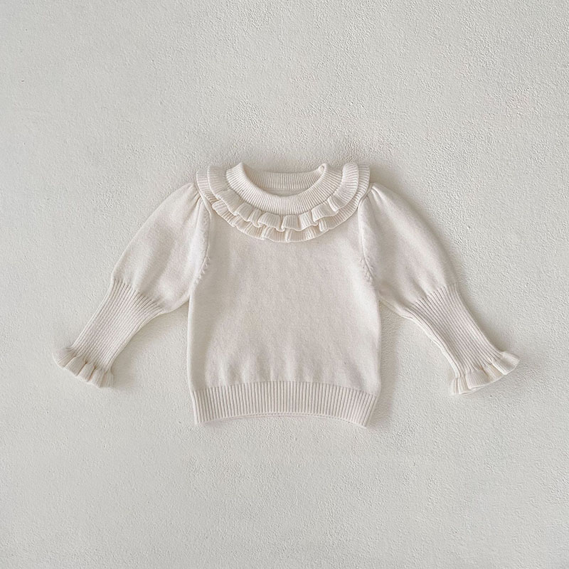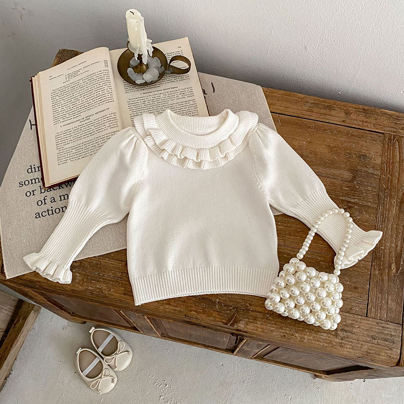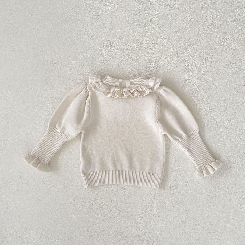 現在カテゴリ:全て商品 > 秋冬新作 ガールズ 子供服 ニット プルオーバー セーター ビショップスリーブ フリル上着 66-100cm