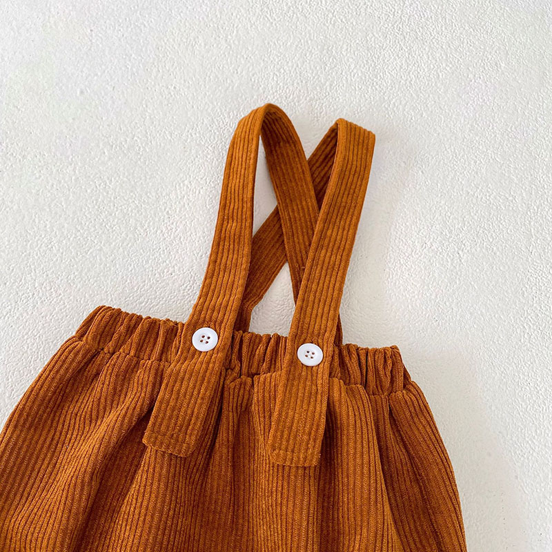 ガールズ 秋冬新作 ブラウス フリル 花柄刺繍 サロペット コーデュロイ シャツ+ズボン 66-100