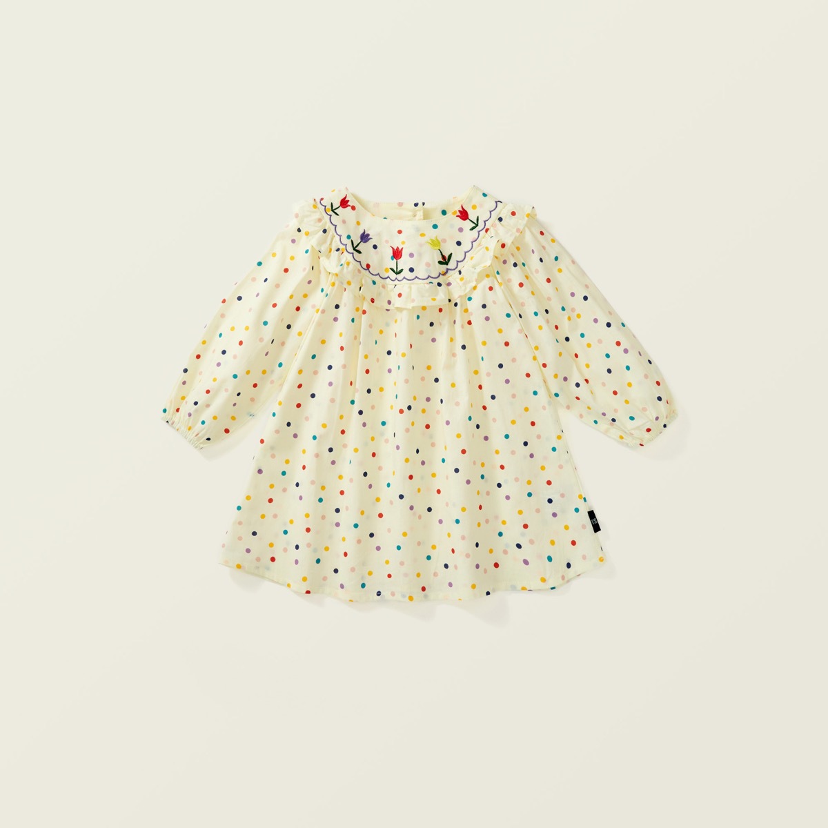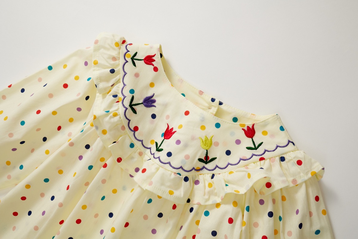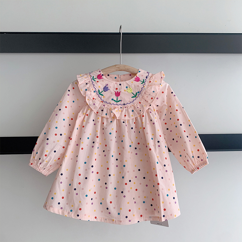 秋冬新作 ガールズ 子供服 シフトドレス フリル ワンピース チューリップ刺繍 ドット柄 ワンピ 90-140