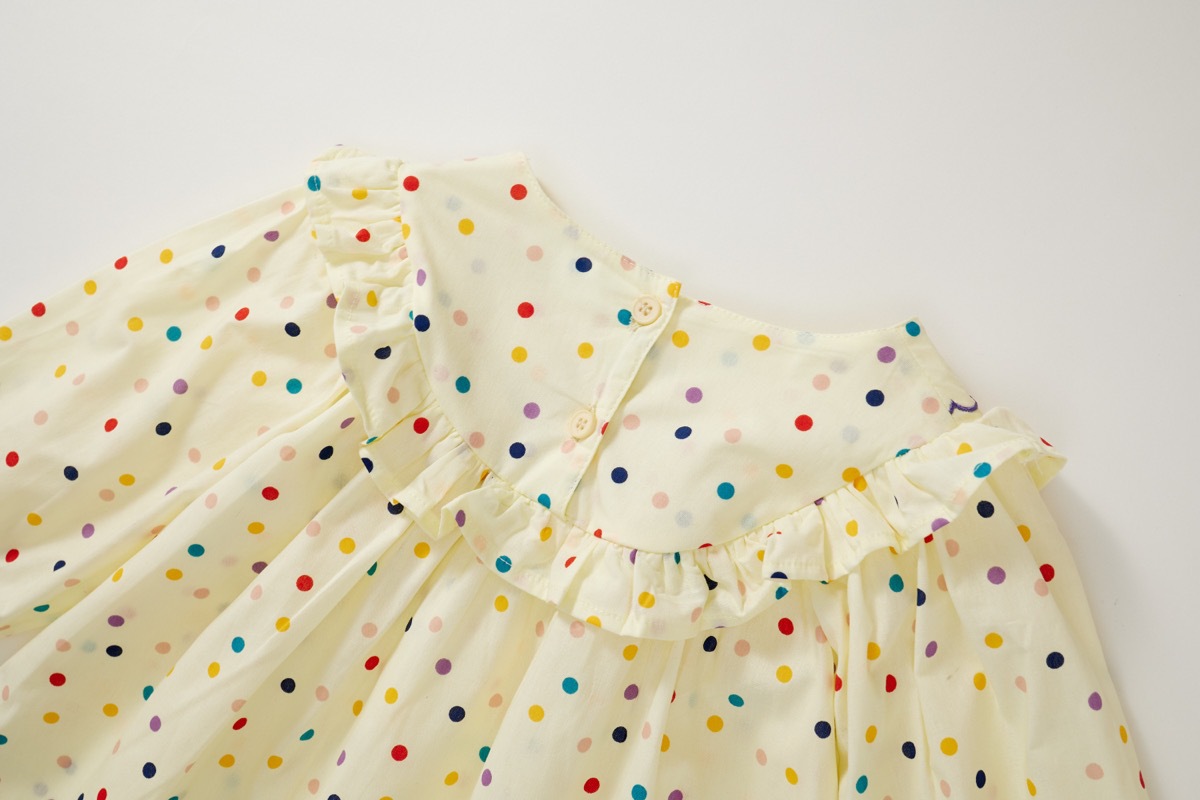 現在カテゴリ:全て商品 > 秋冬新作 ガールズ 子供服 シフトドレス フリル ワンピース チューリップ刺繍 ドット柄 ワンピ 90-140