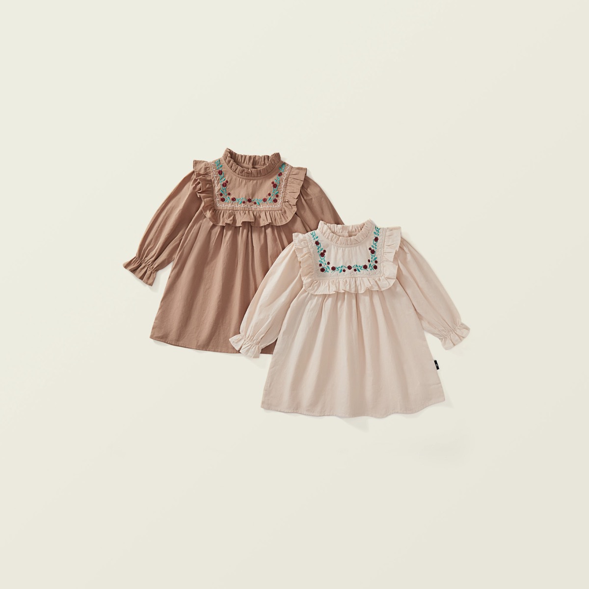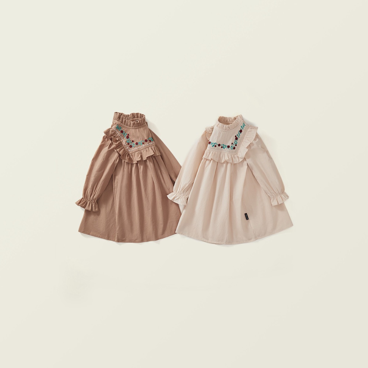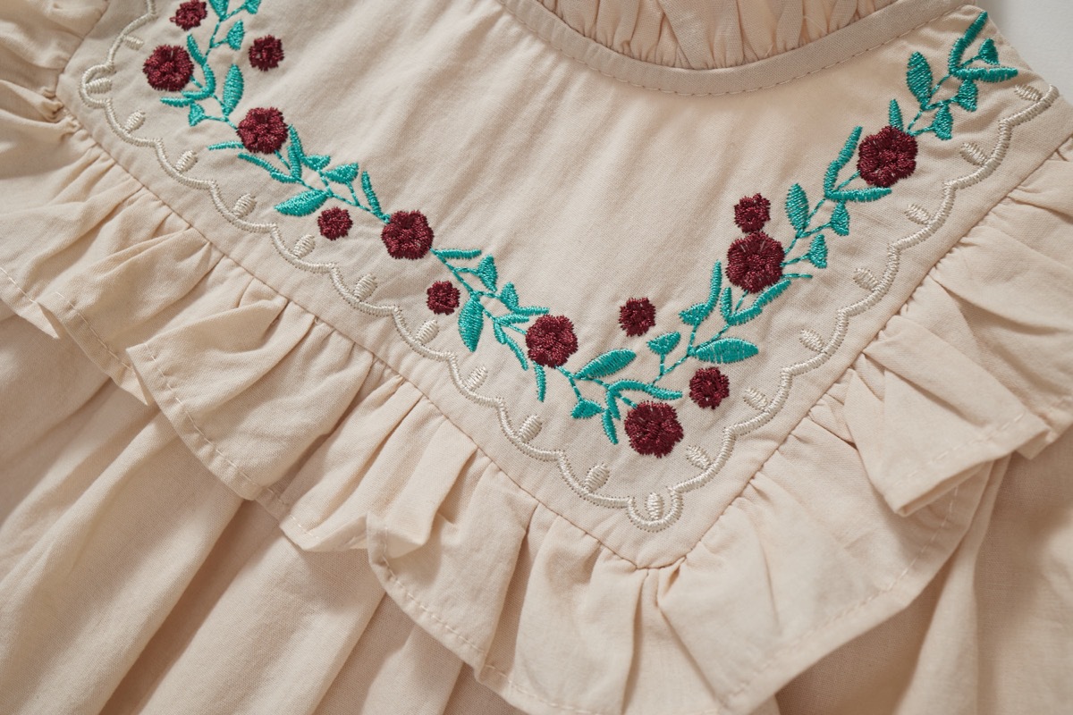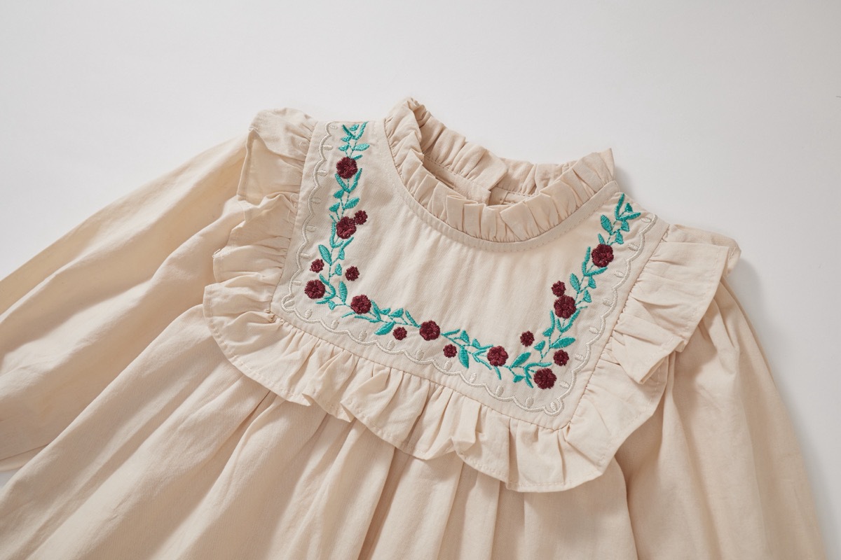 秋冬新作 オシャレ ガールズ 子供服 レトロ シフトドレス フリル ワンピース 刺繍 花柄 ワンピ 90-140
