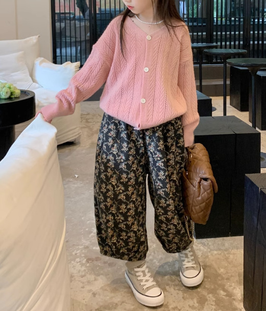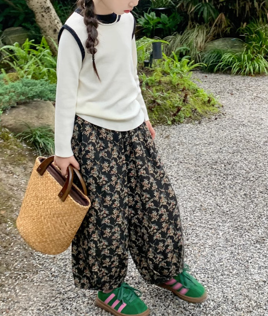 秋冬新作 ガールズ 3-8歳女の子 ニッカボッカ ズボン ワイドパンツ ストライプ柄花柄 ロングパンツ 7-15
