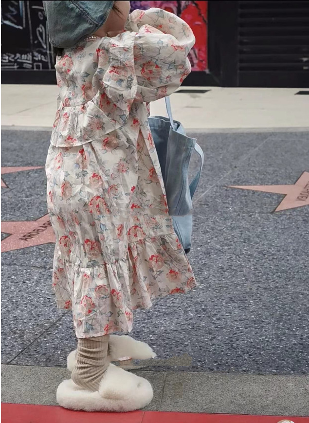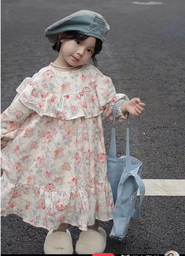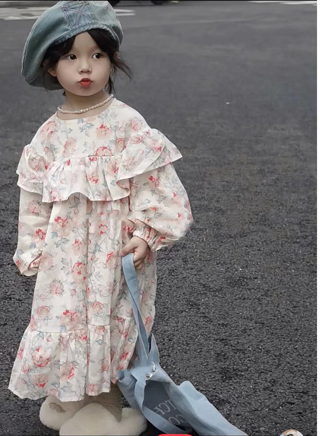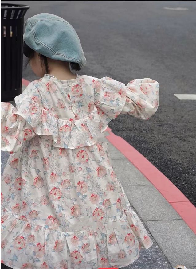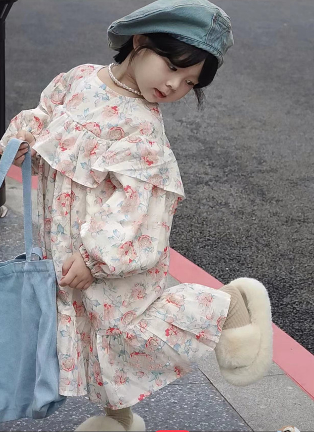 秋冬新作 オシャレ ガールズ 3-8歳 フリル シフトドレス ゆったり ワンピース 花柄 ワンピ 7-15