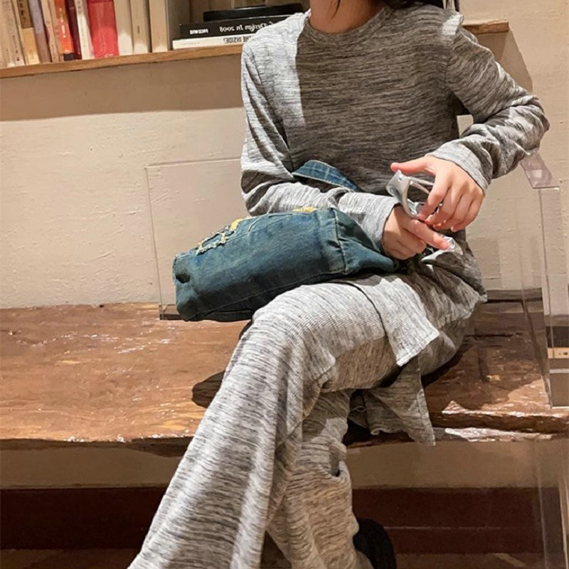 秋冬新作 オシャレ春秋 ガールズ プルオーバー ゆったり ロングTシャツ+ズボン ワイドパンツ 7-15