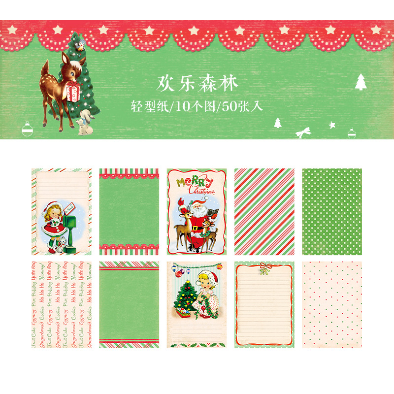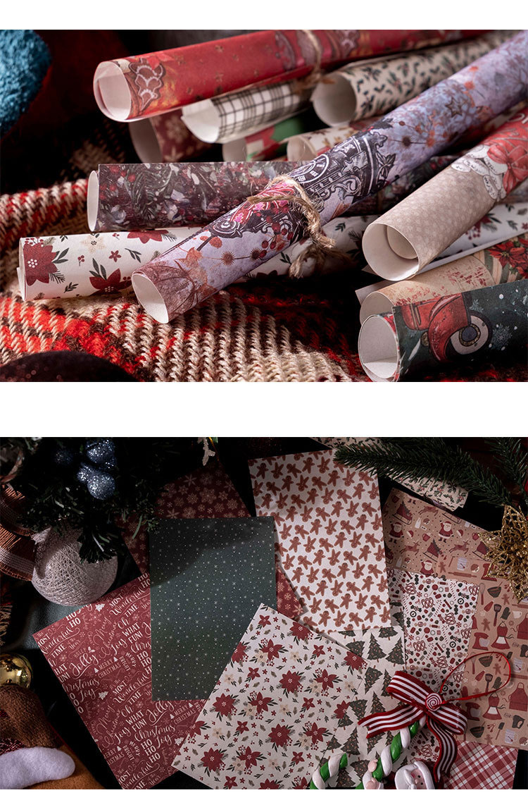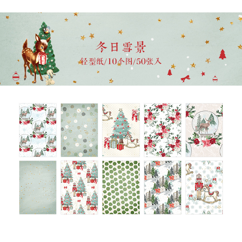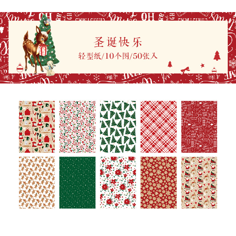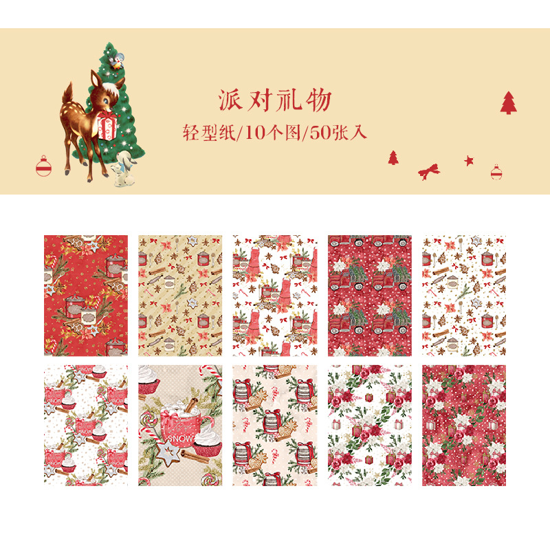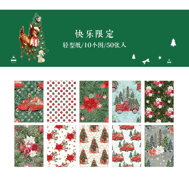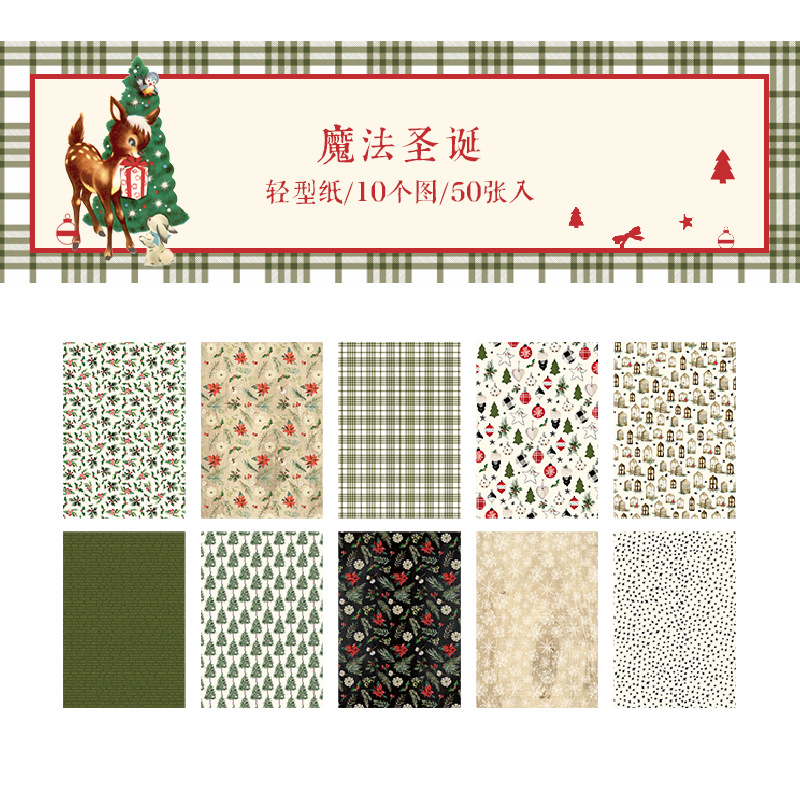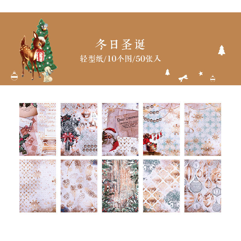 ペーパー素材紙 アンティーク クリスマス ポスター クリスマスツリー 花柄幾何学柄 サンタクロース 50枚入
