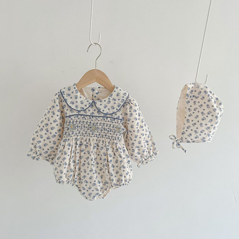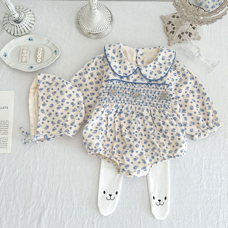 秋冬新作 ガールズ カバーオール 連体服 ストッキング レギンス 花柄 帽子+ロンパース 66-100